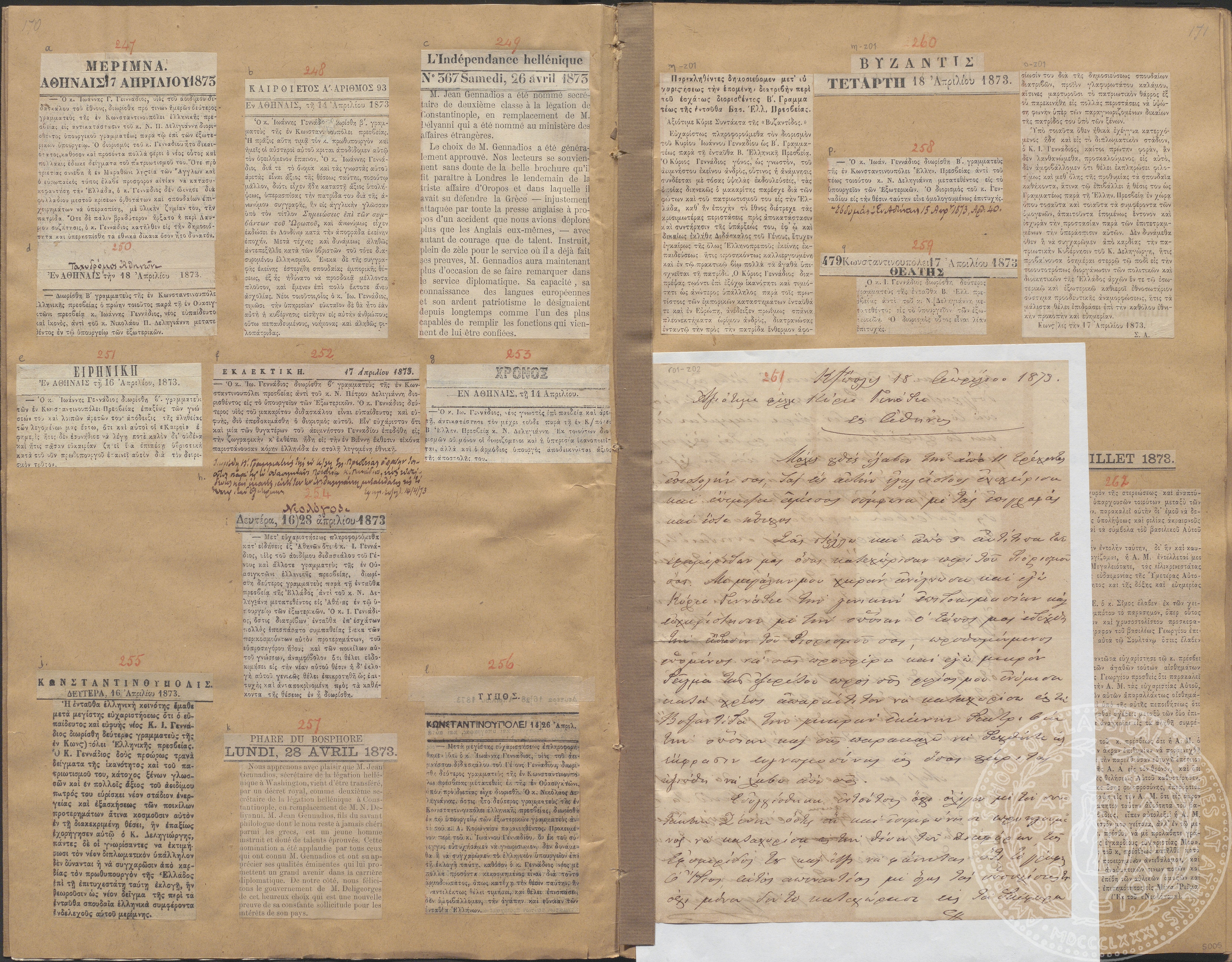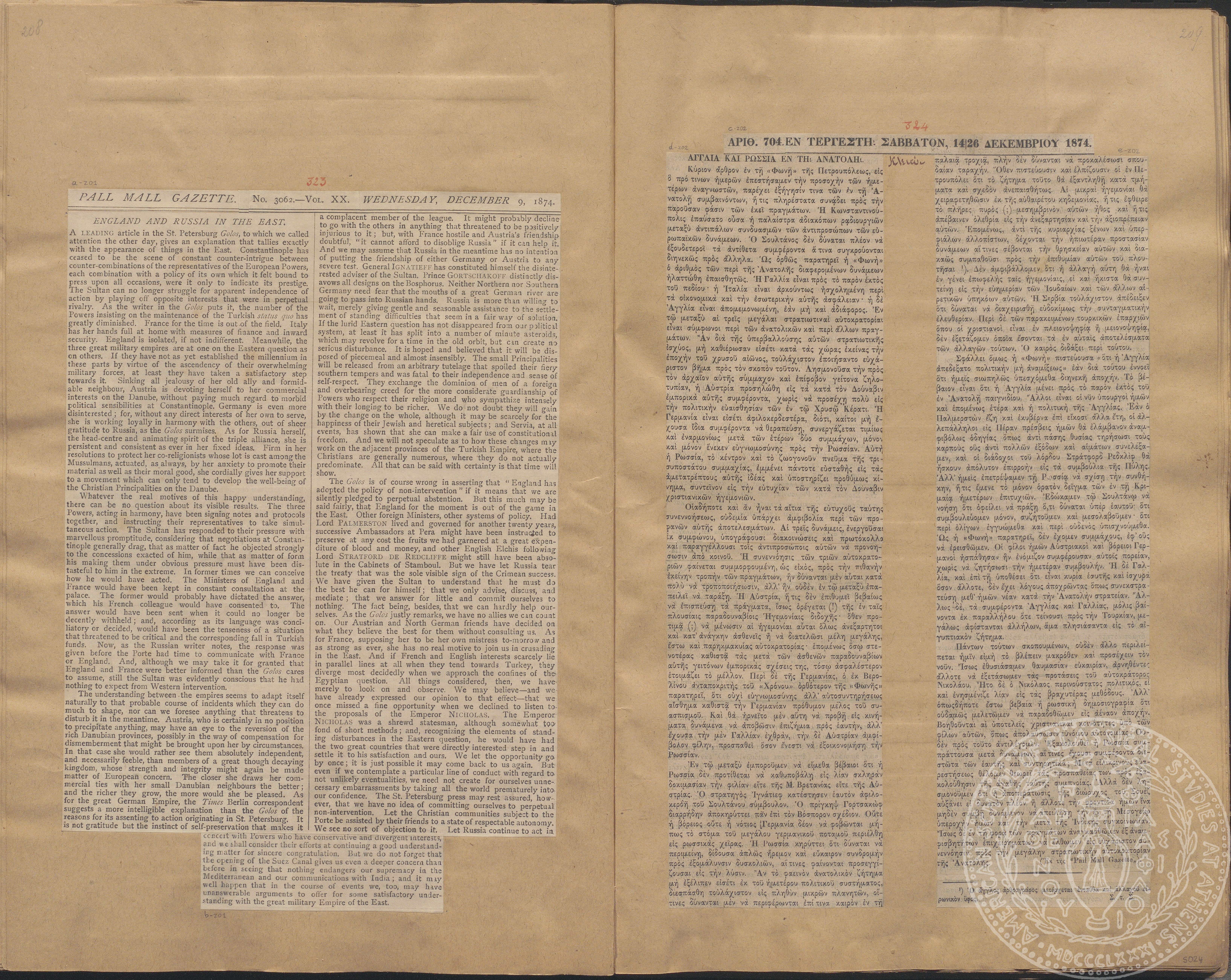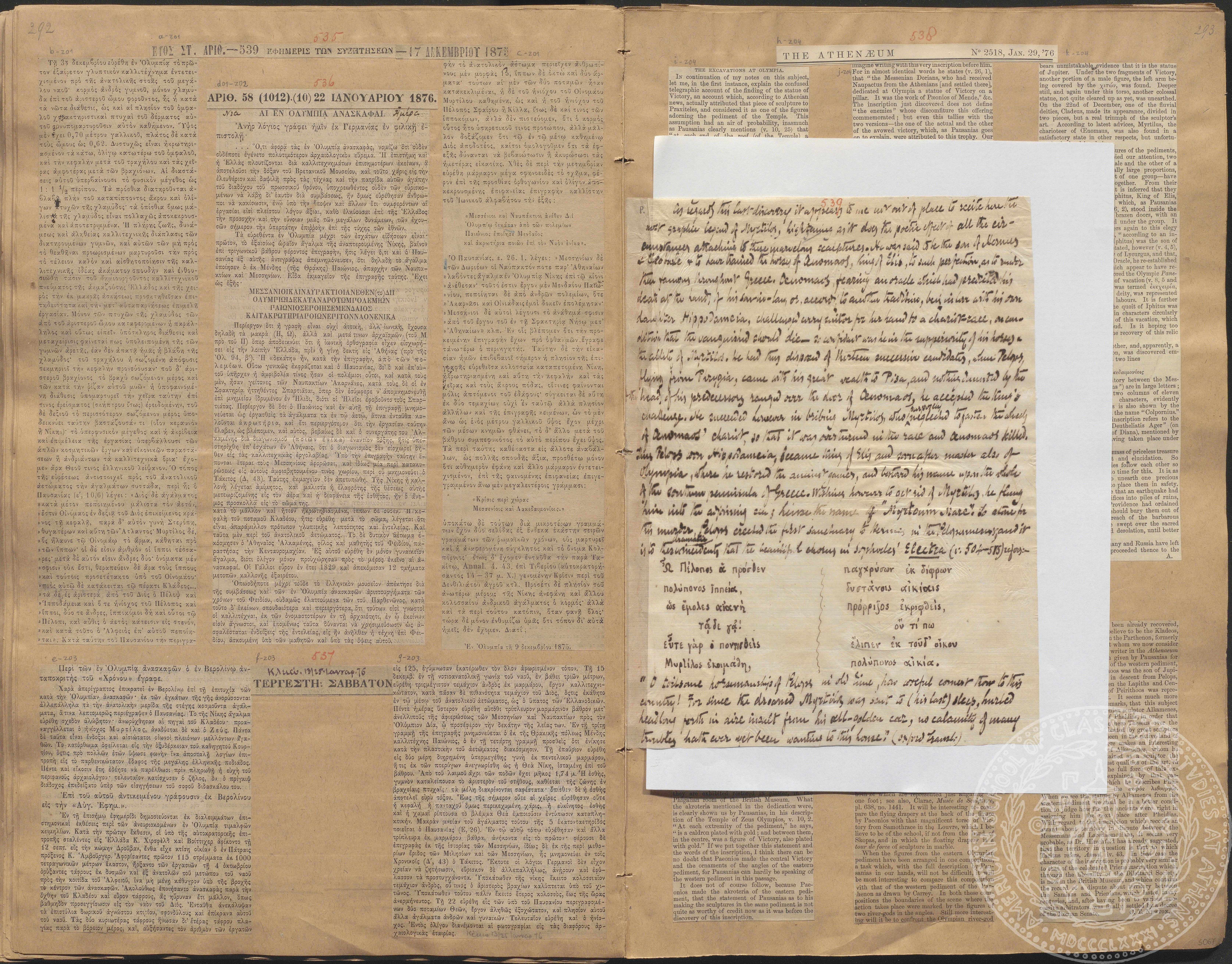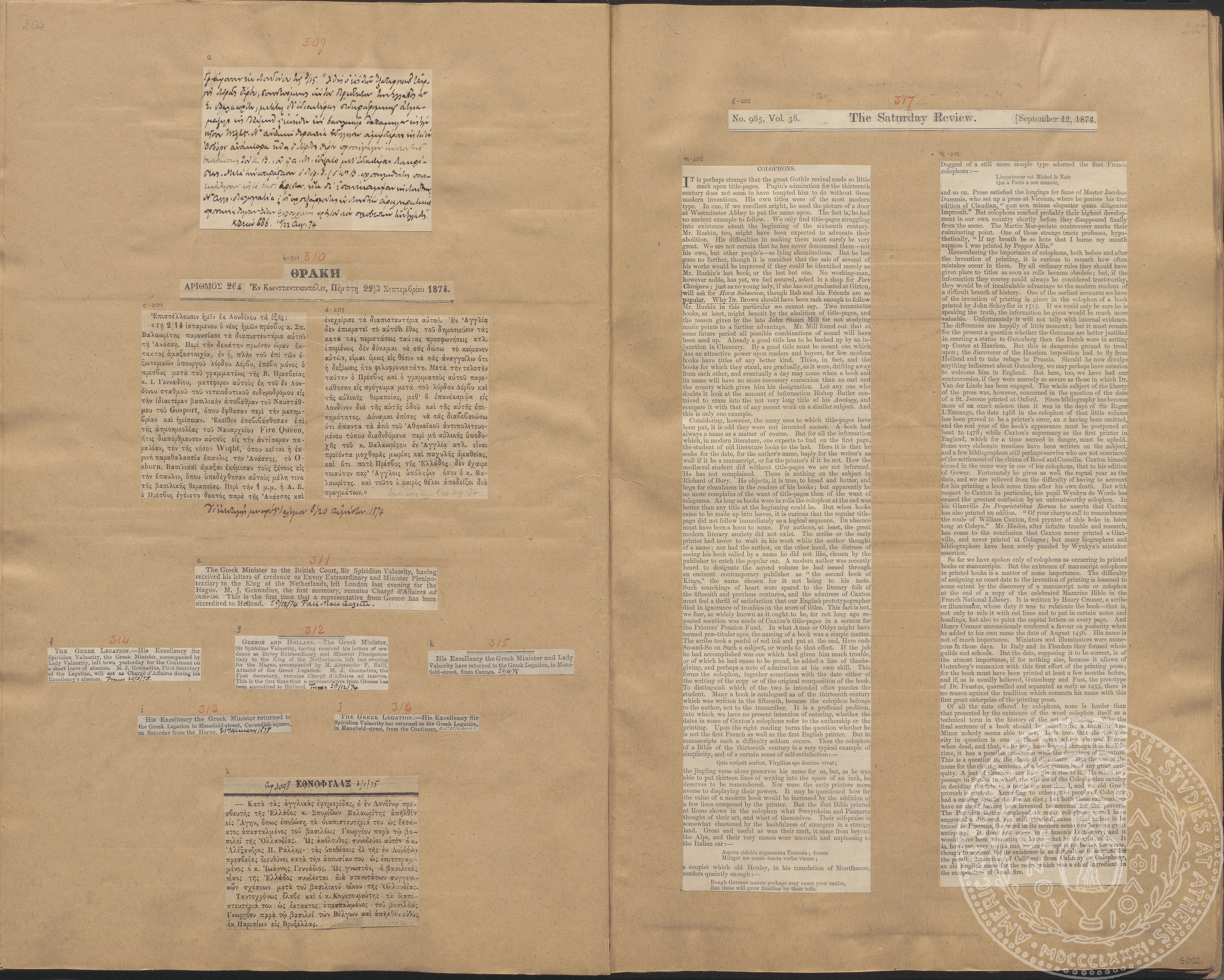 SCRAPBOOK 004, Vol. 2, Ι. Γεννάδιος και οικογένεια.  Η Ελλάδα στον τύπο (1874–1876) , Spread 069