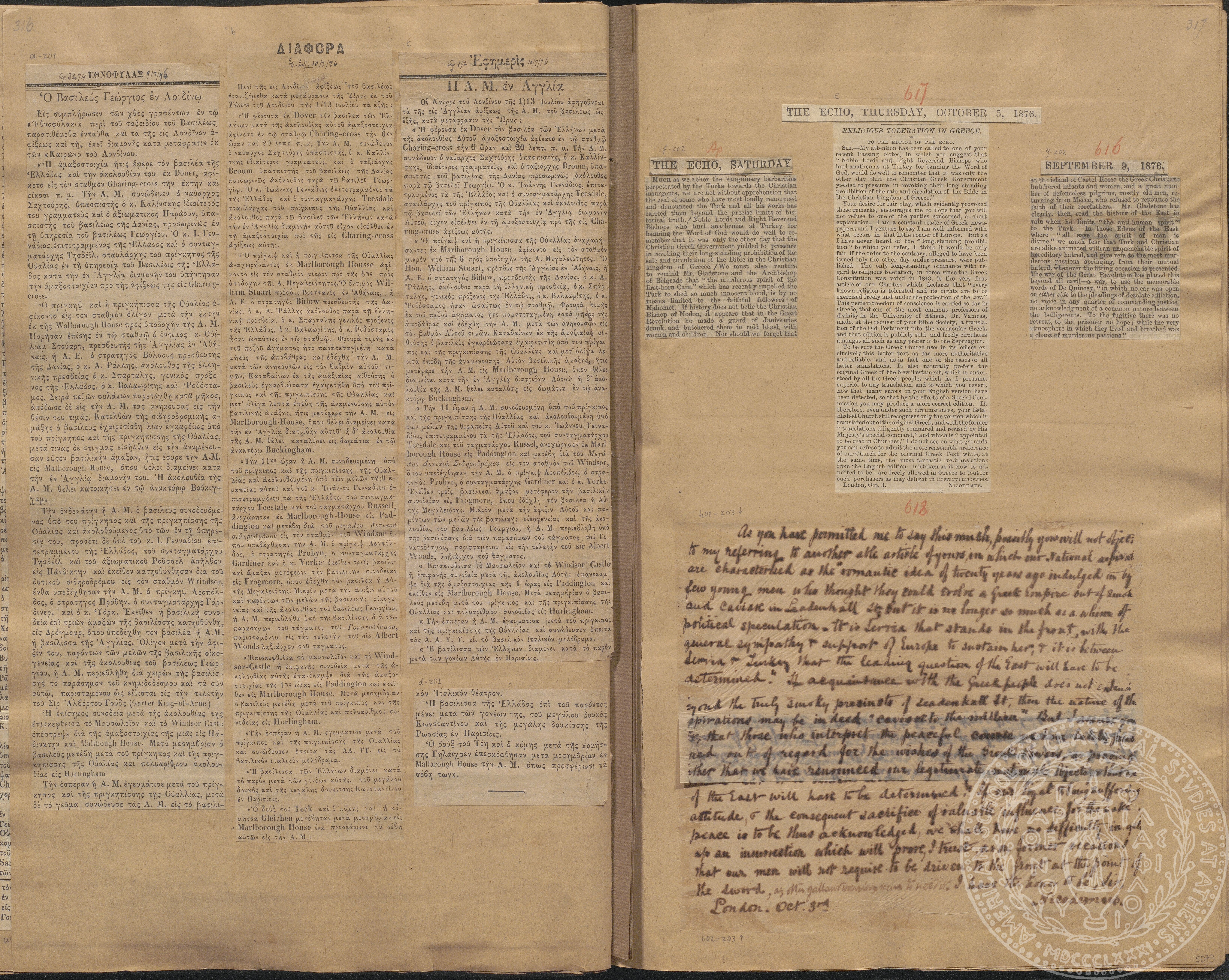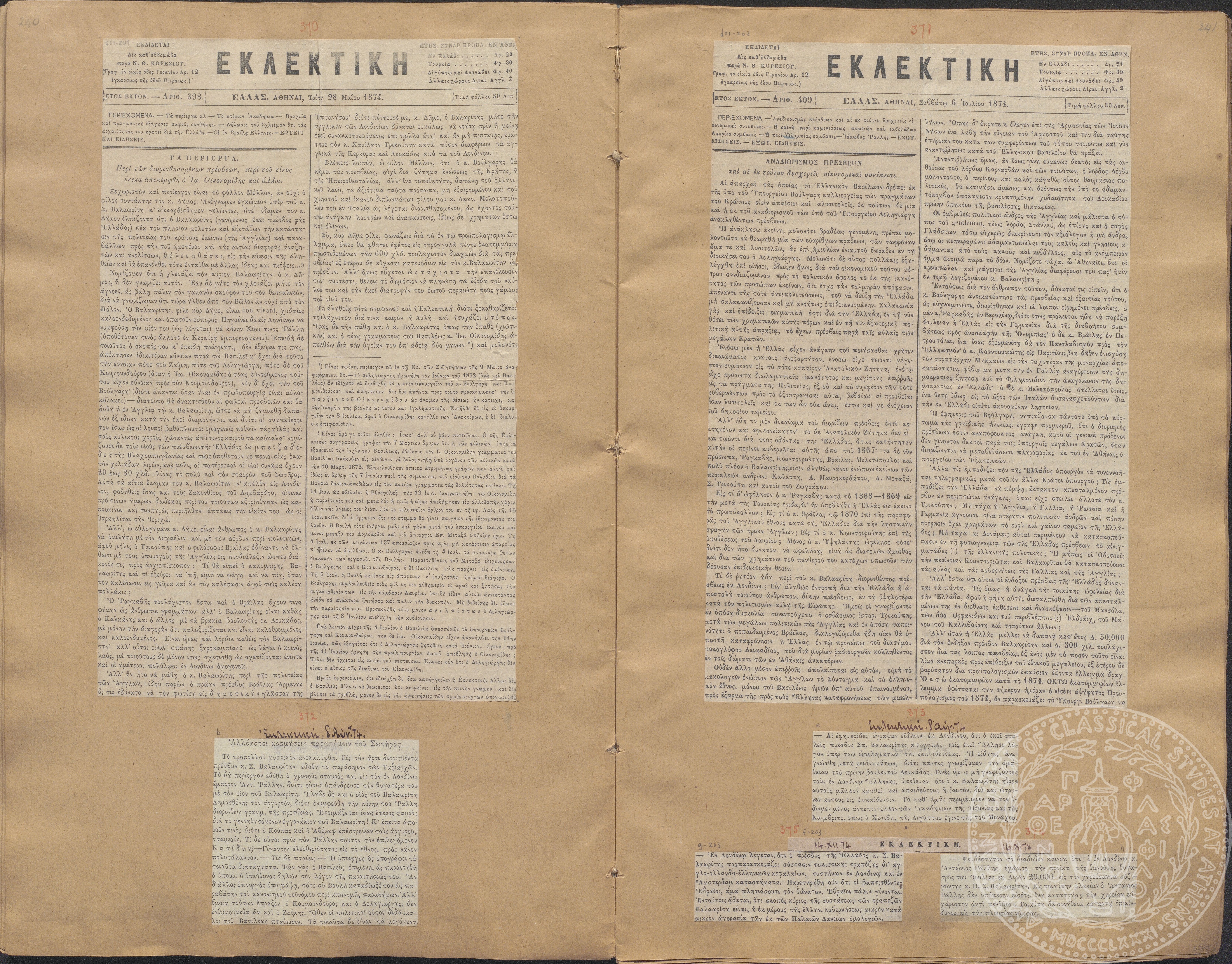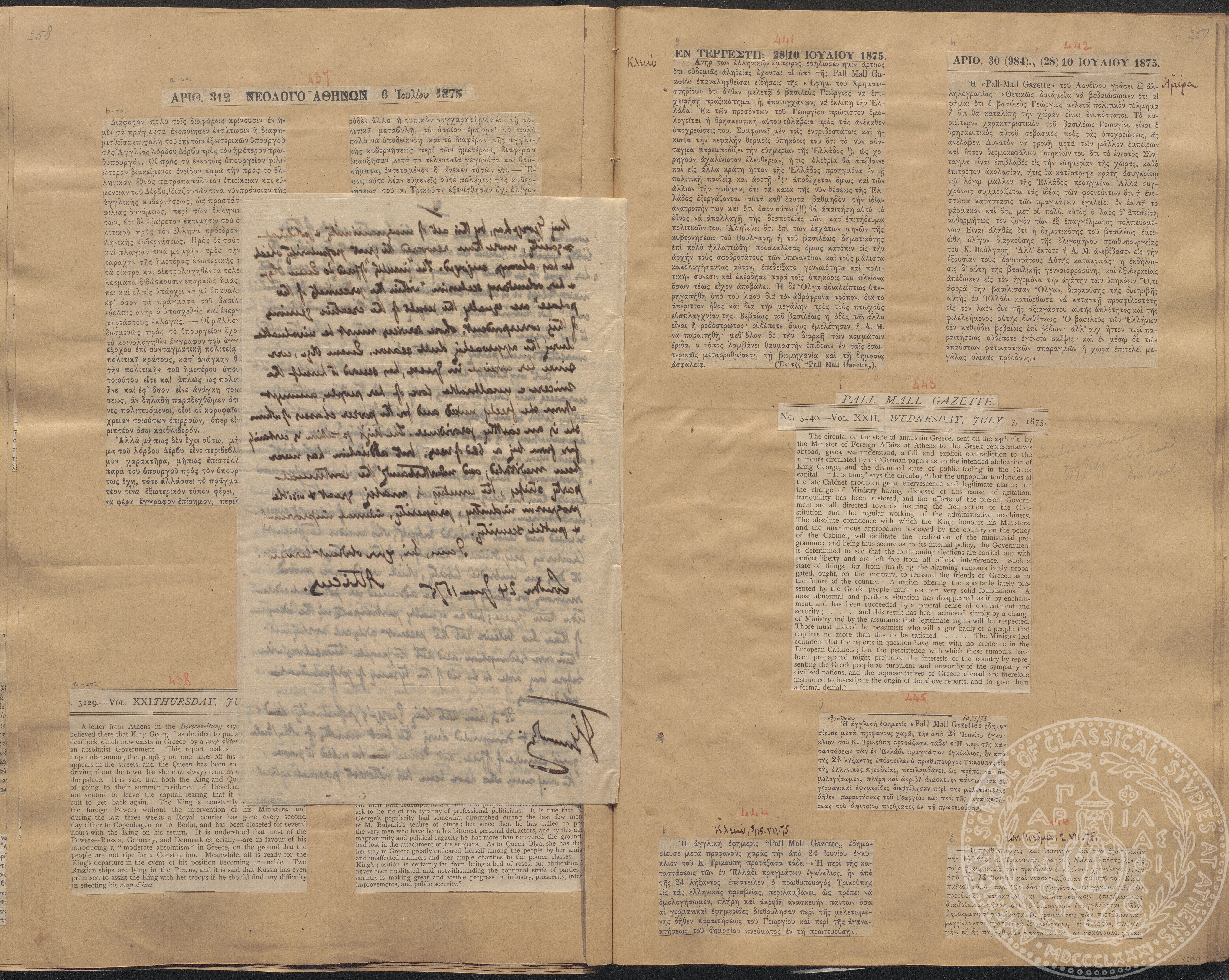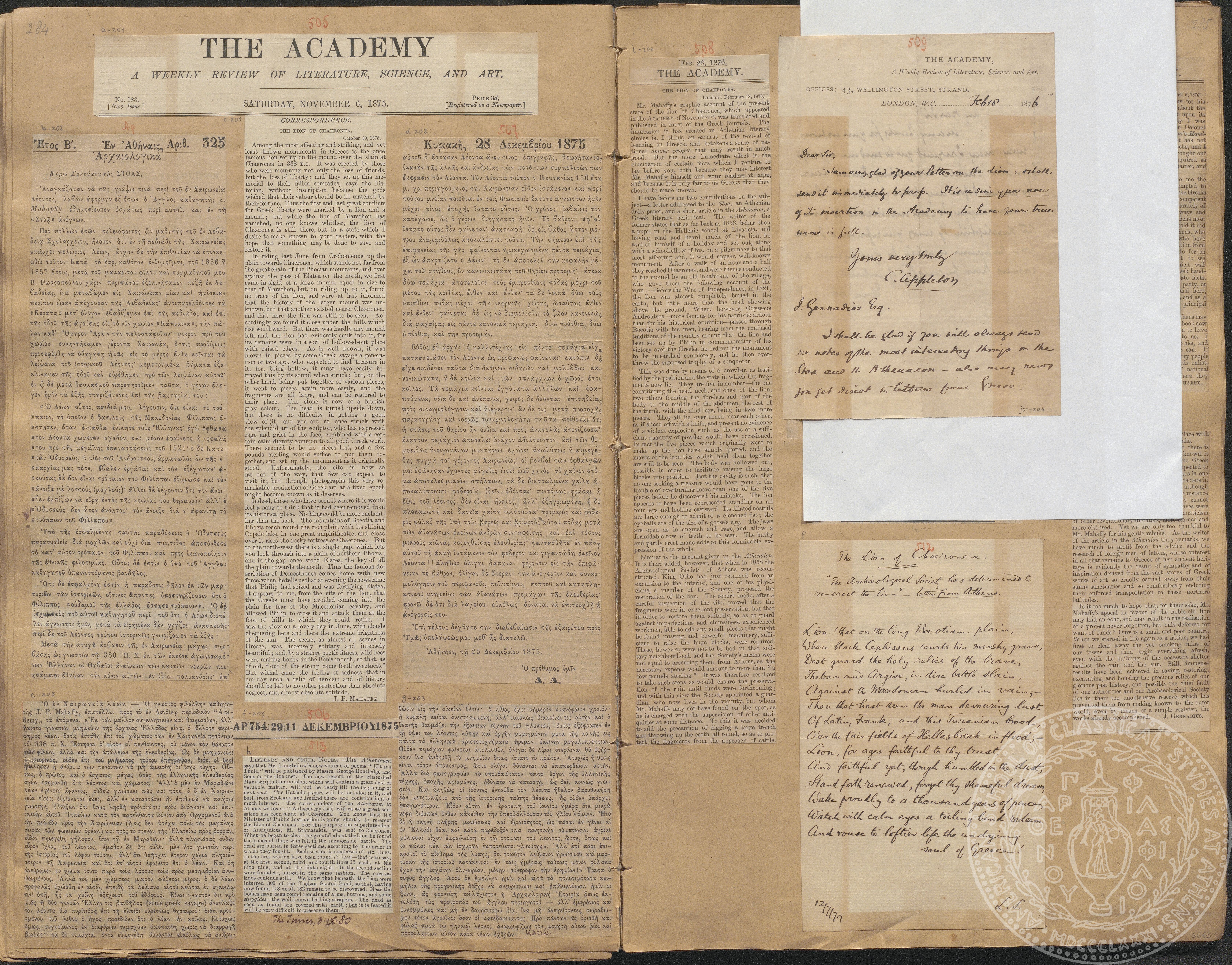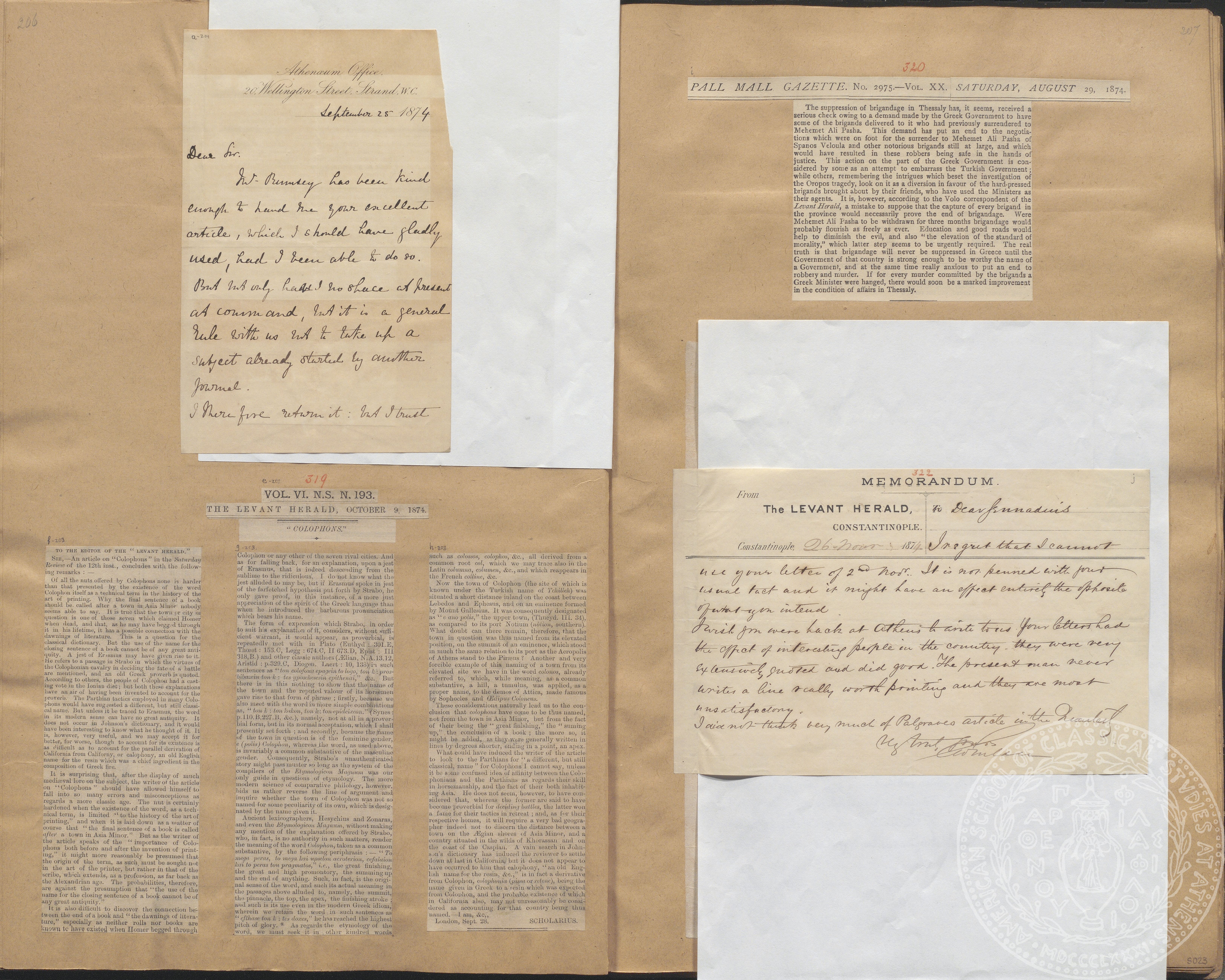 SCRAPBOOK 004, Vol. 2, Ι. Γεννάδιος και οικογένεια.  Η Ελλάδα στον τύπο (1874–1876) , Spread 069