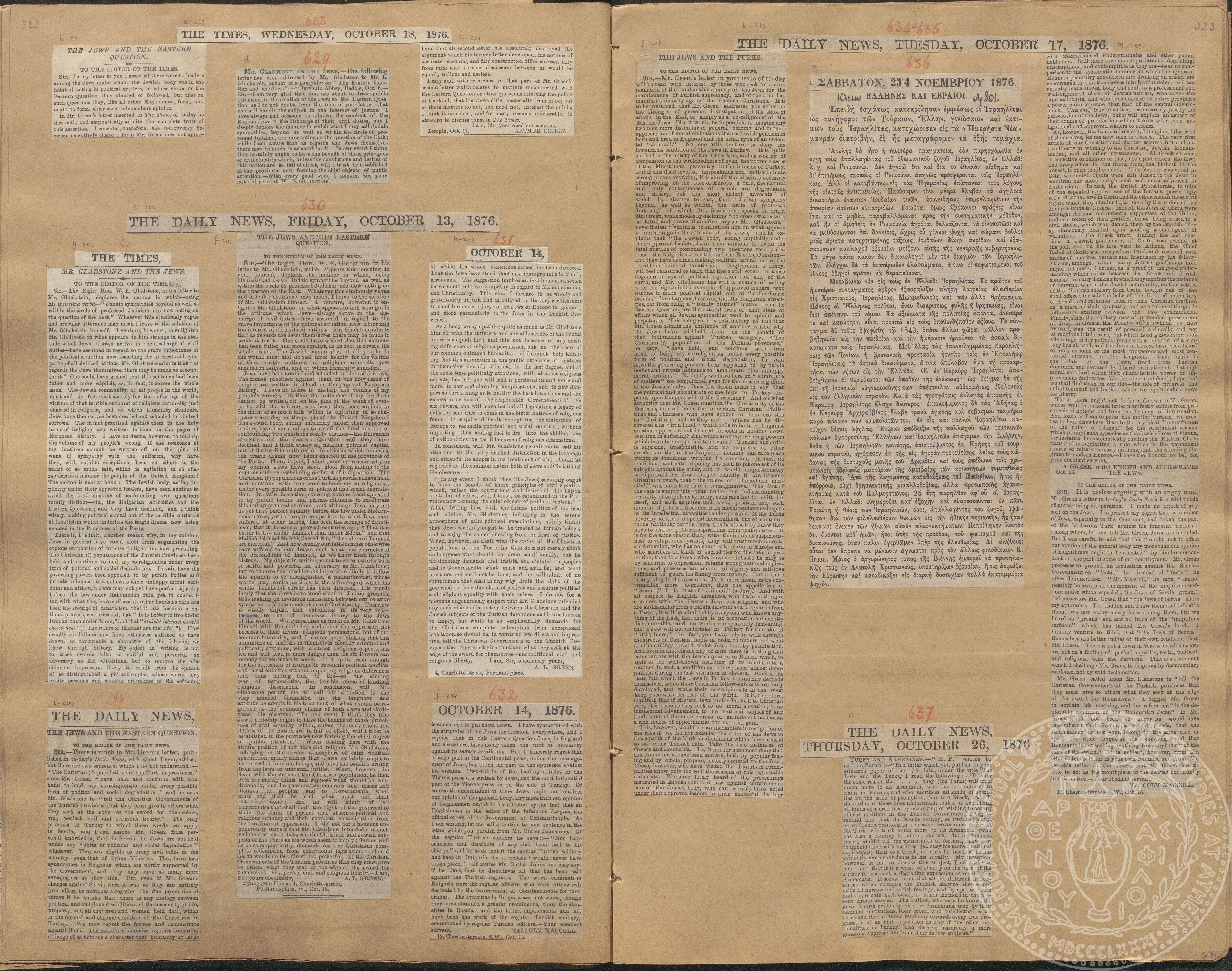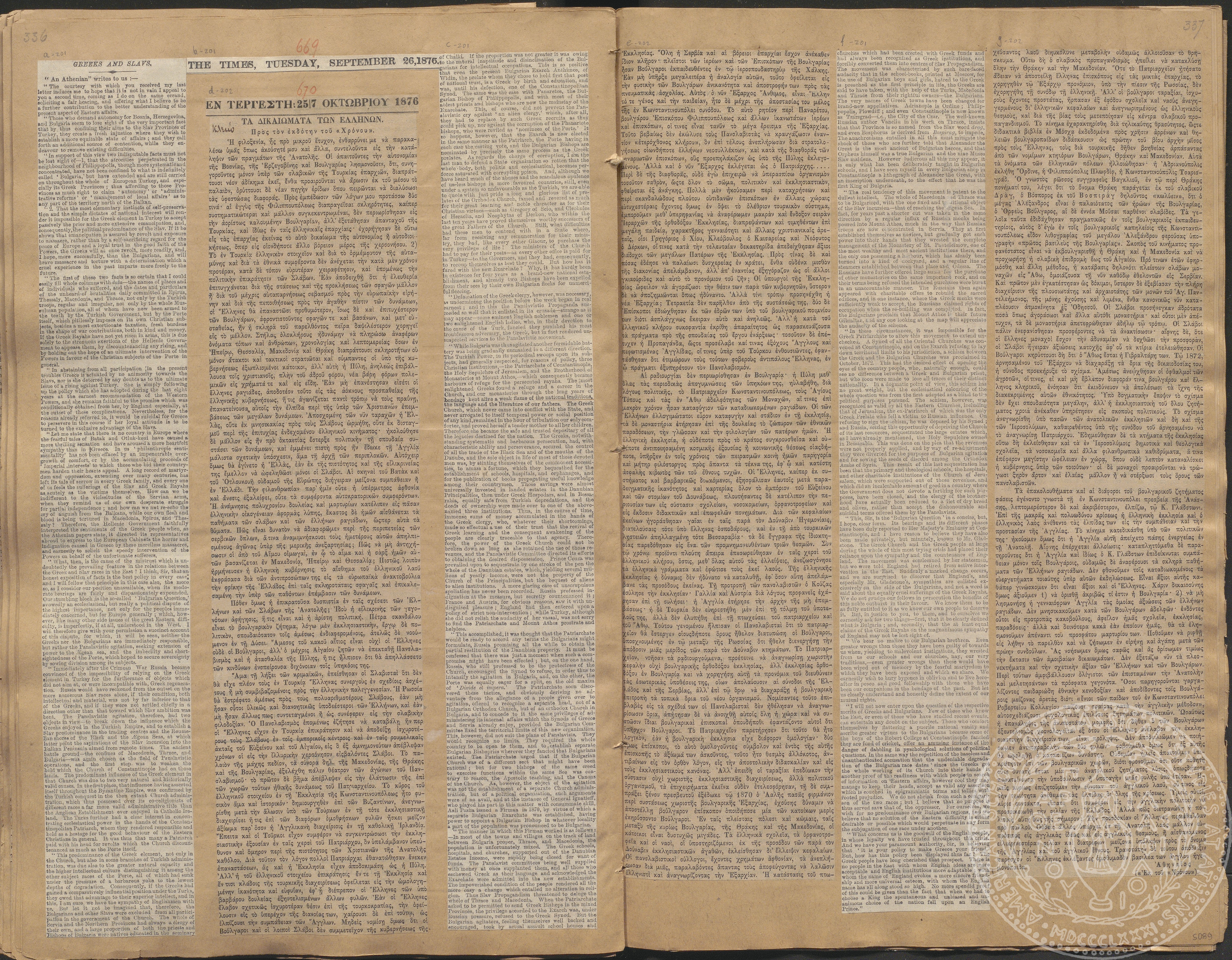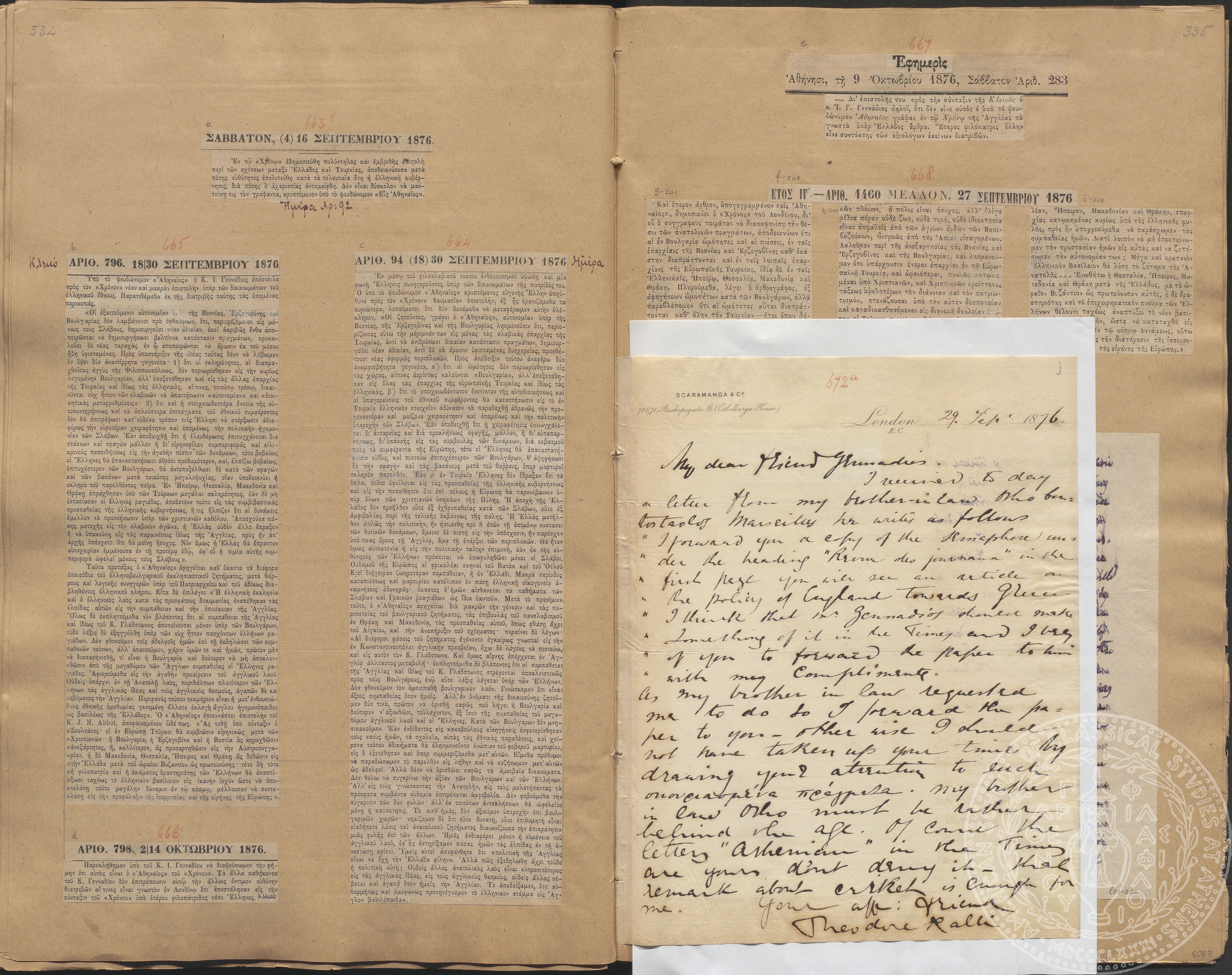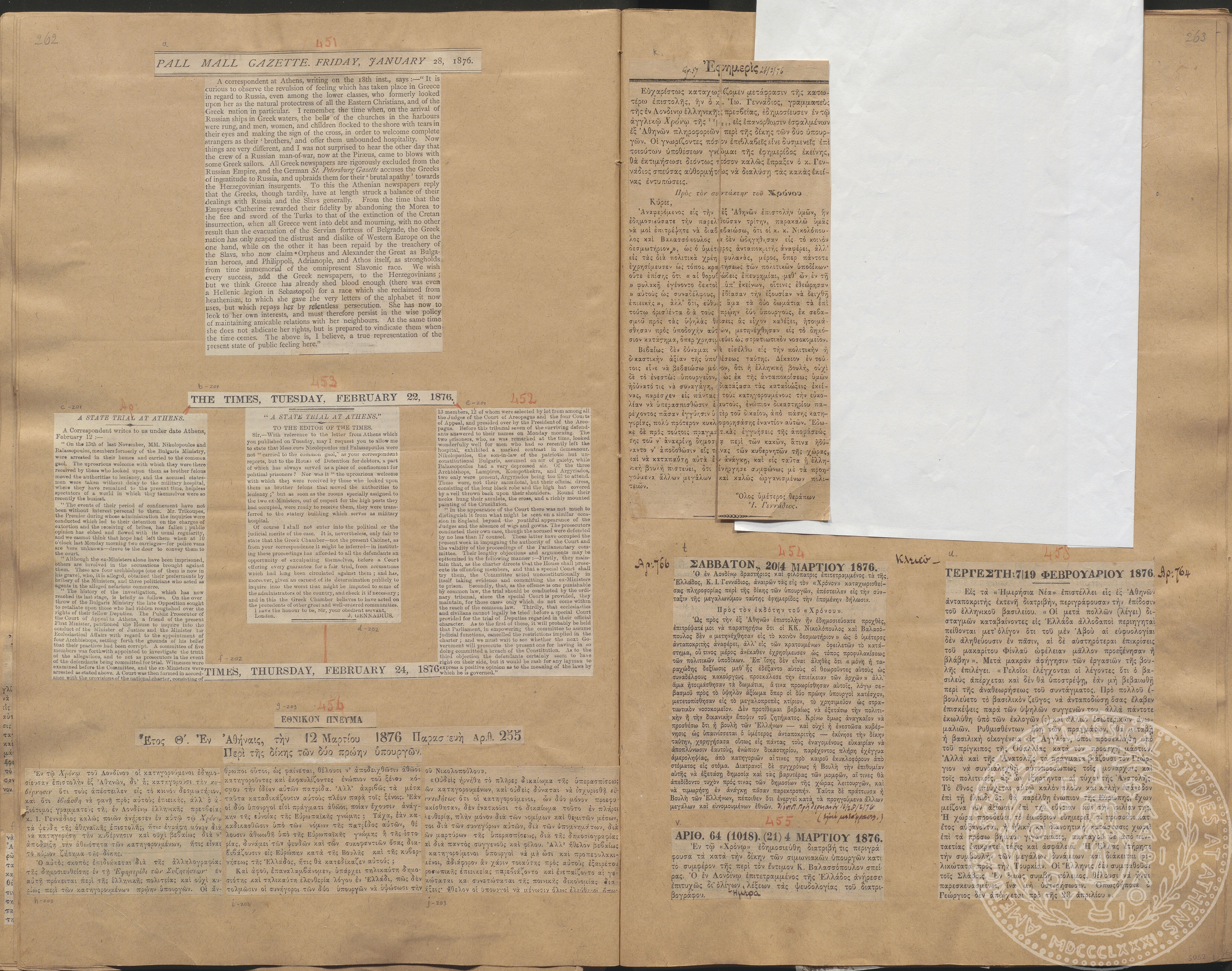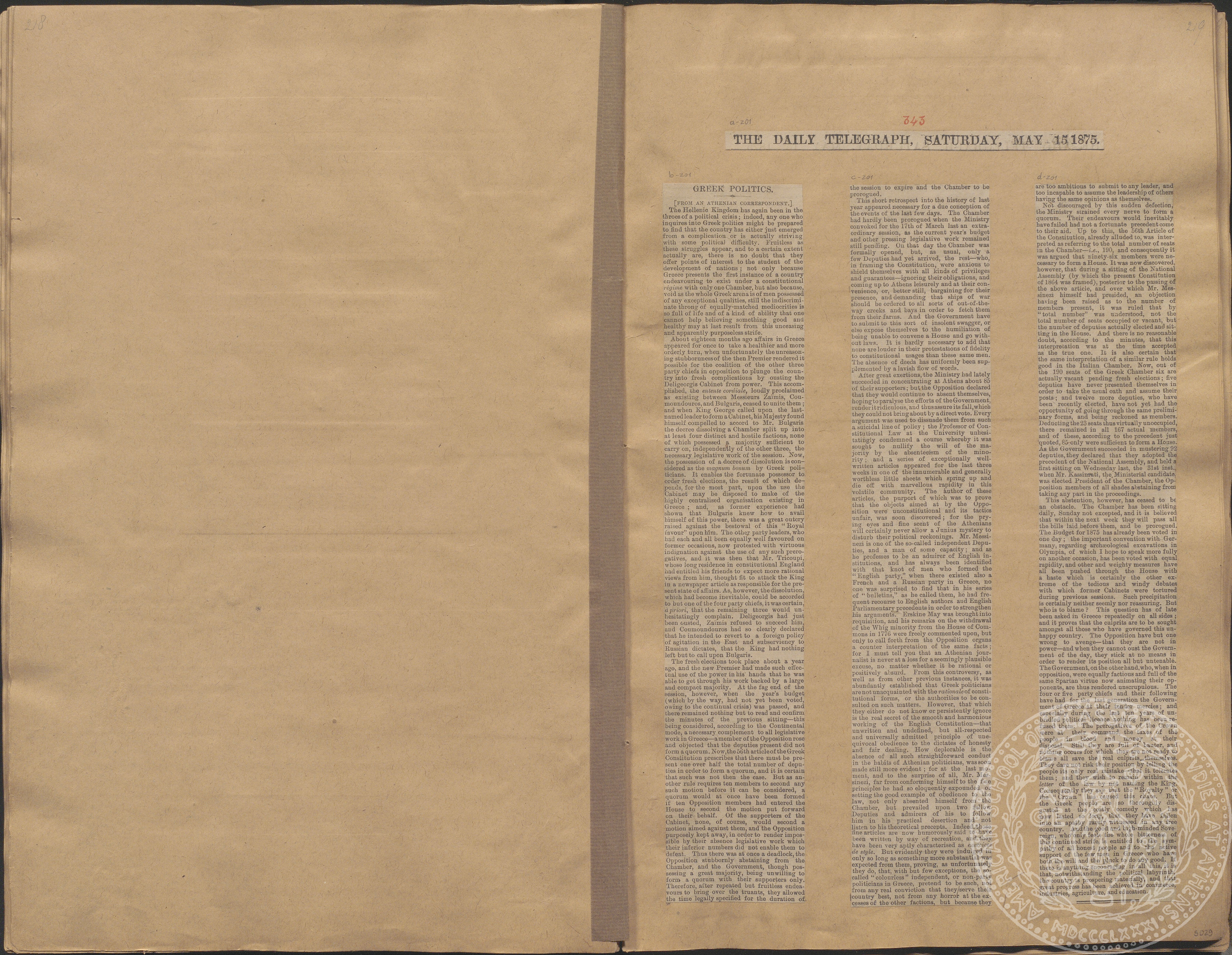 SCRAPBOOK 004, Vol. 2, Ι. Γεννάδιος και οικογένεια.  Η Ελλάδα στον τύπο (1874–1876) , Spread 043