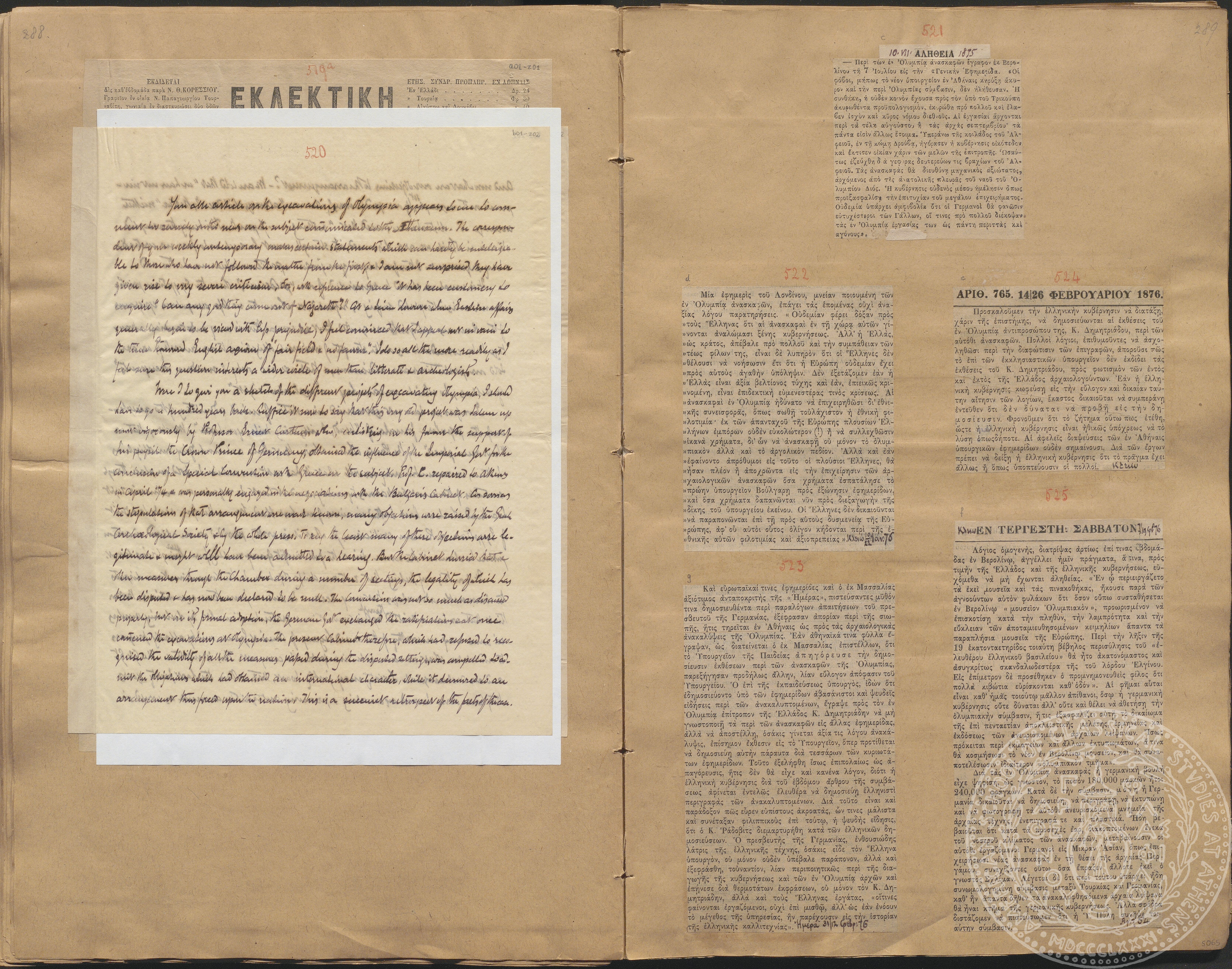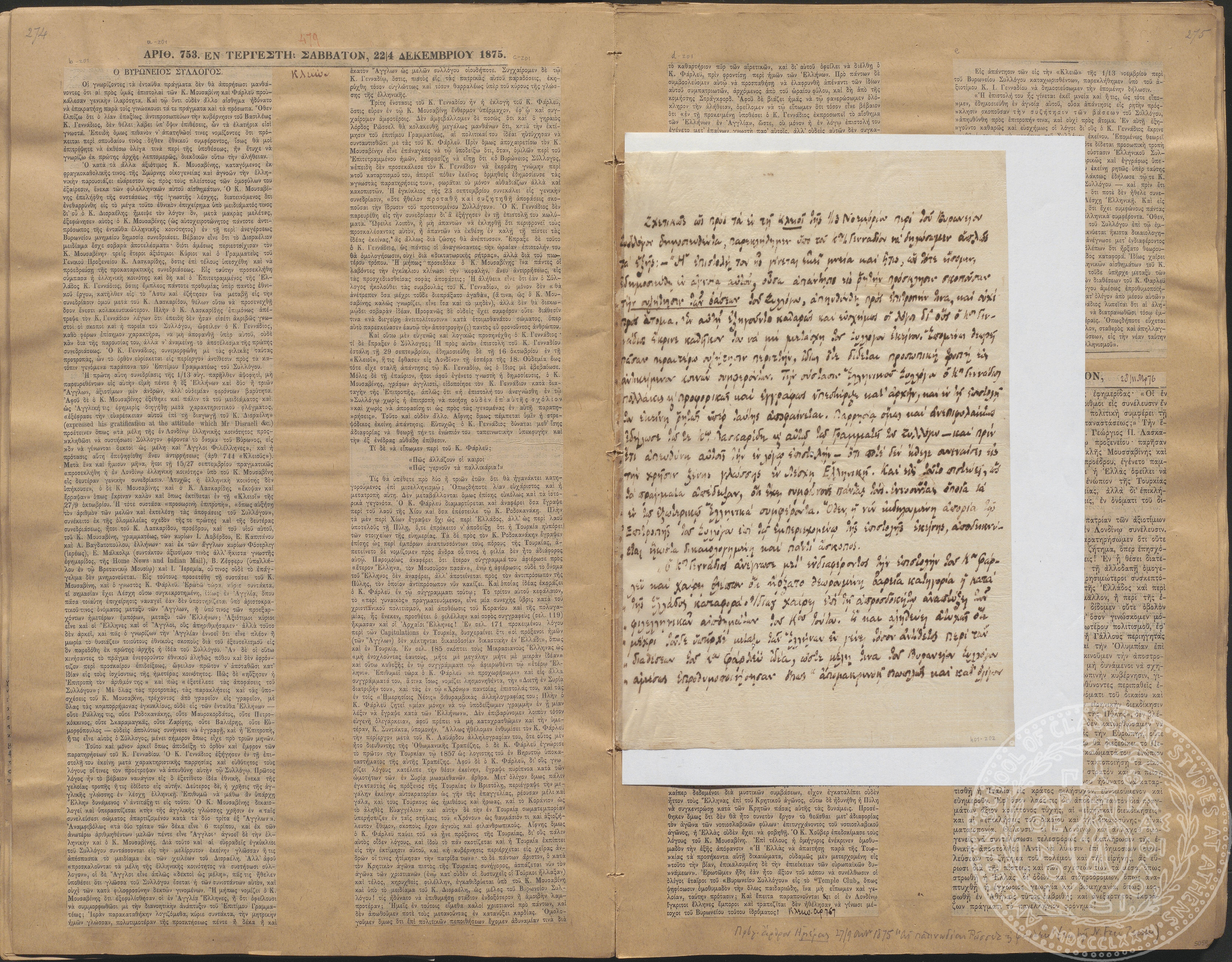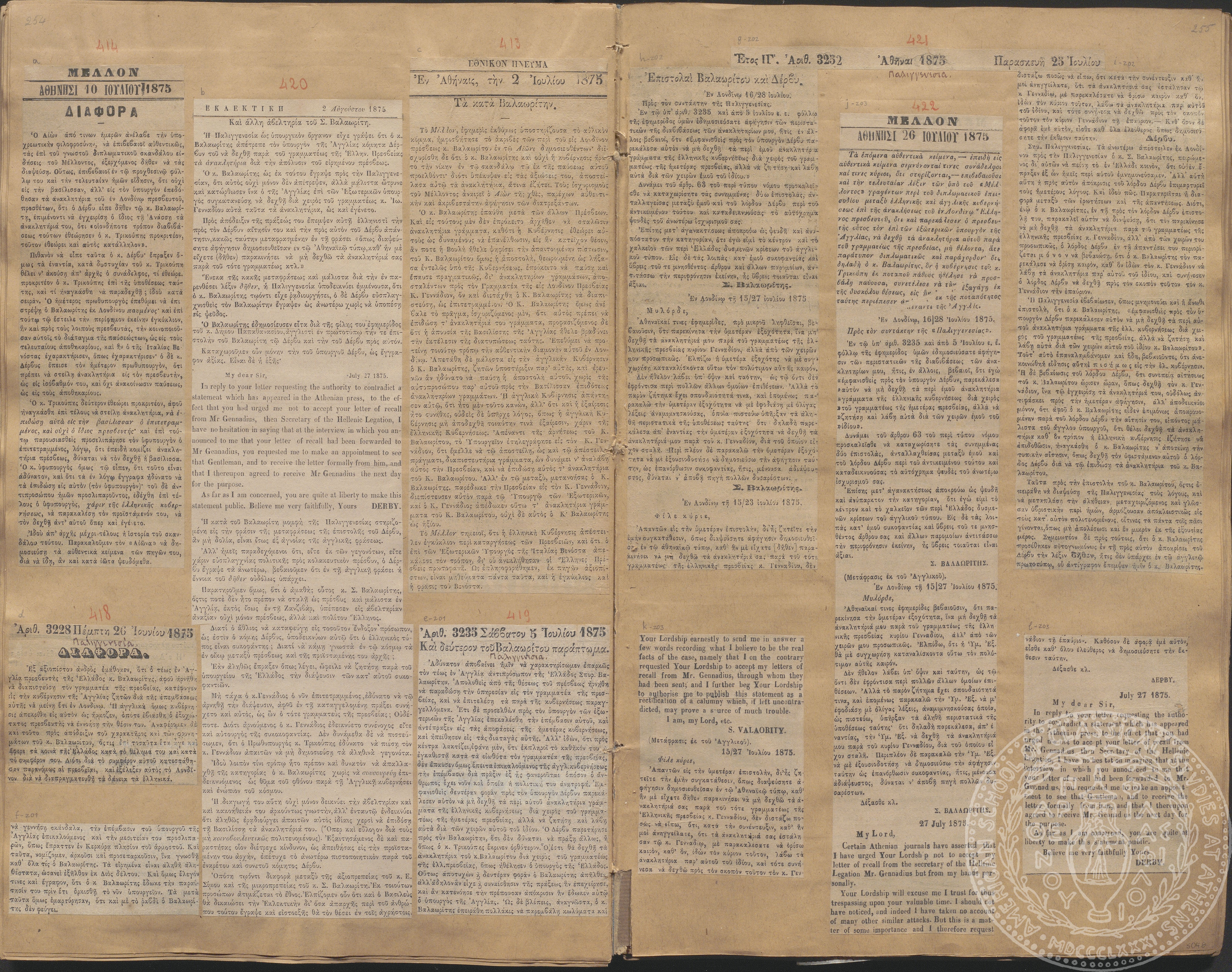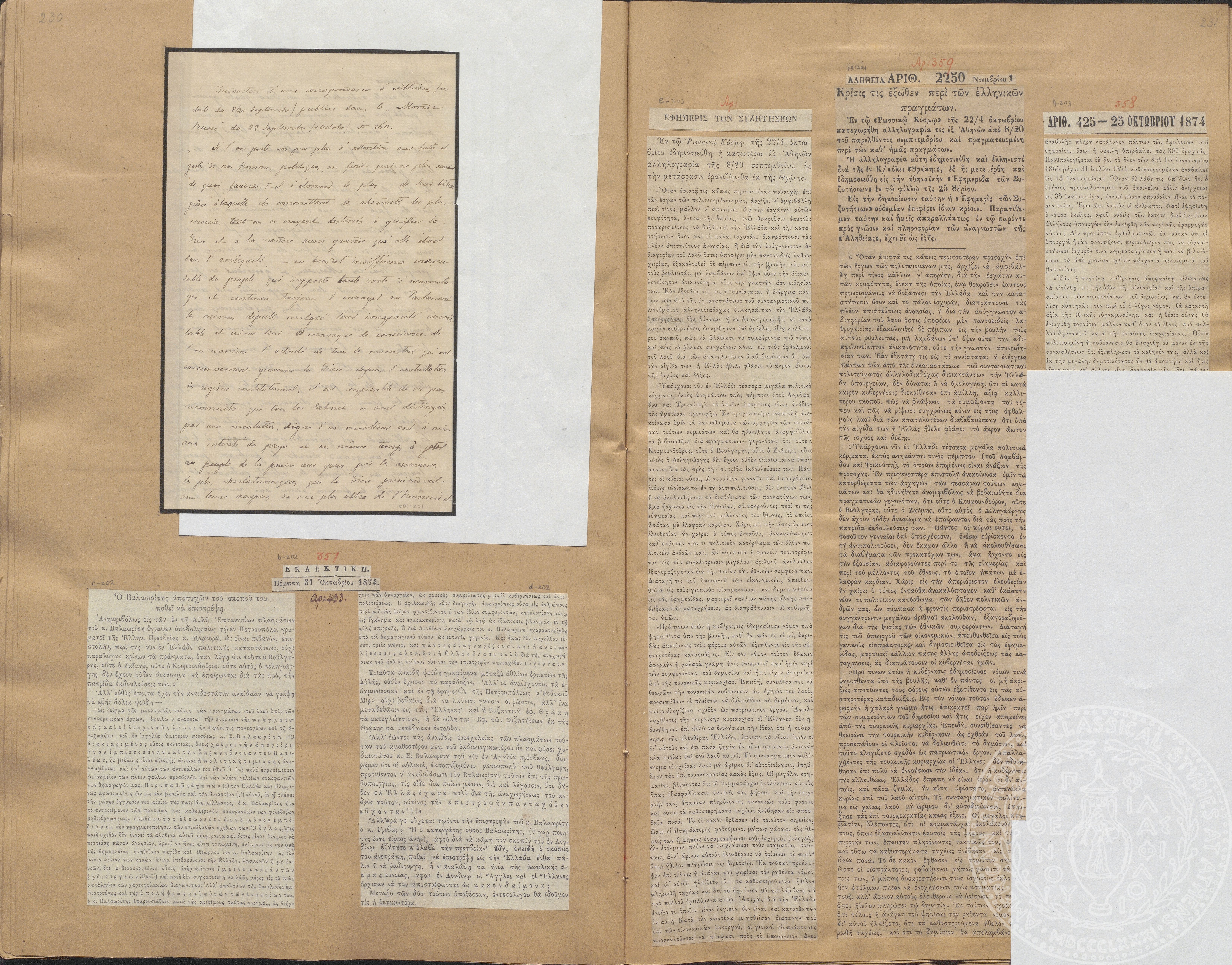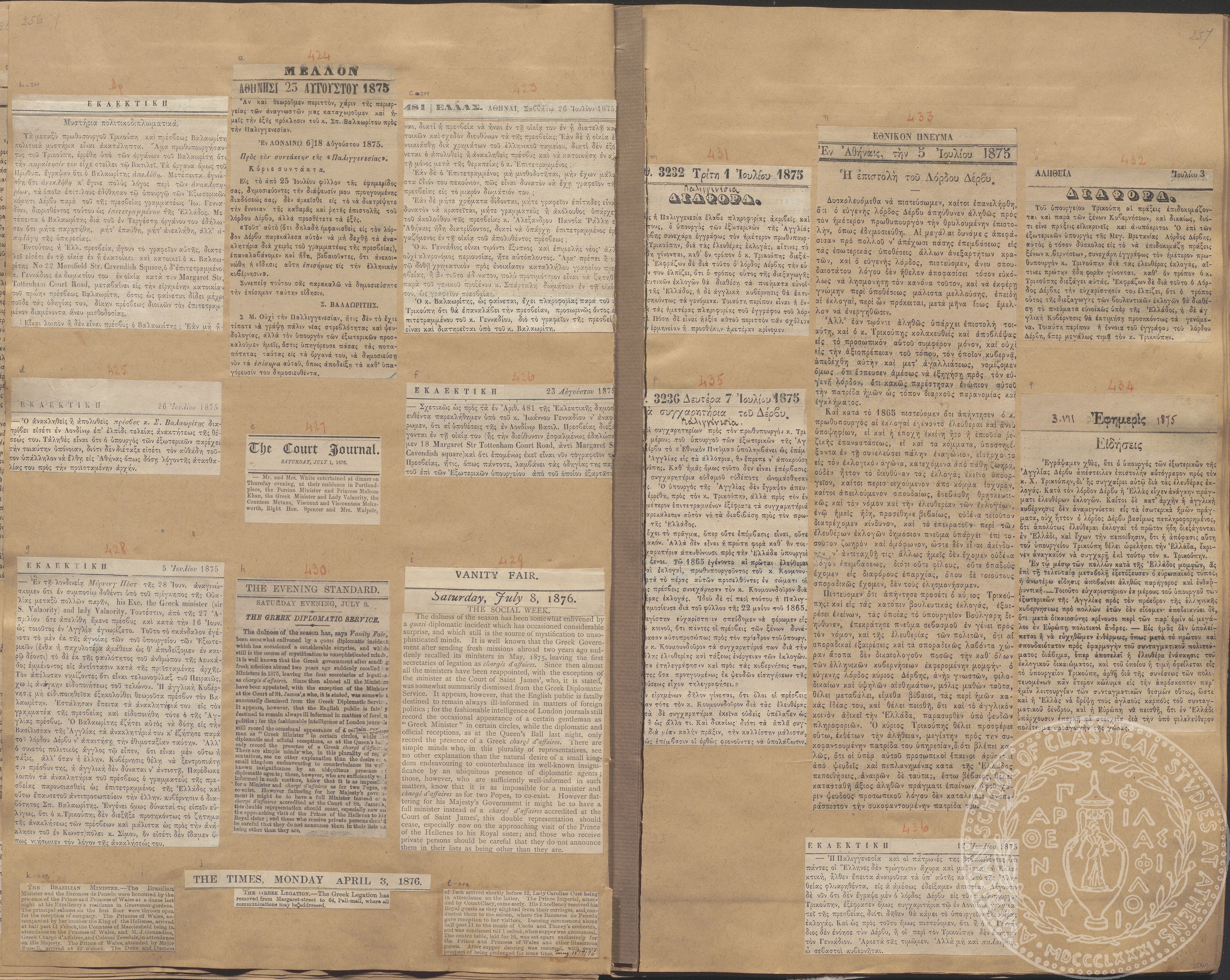SCRAPBOOK 004, Vol. 2, Ι. Γεννάδιος και οικογένεια.  Η Ελλάδα στον τύπο (1874–1876) , Spread 043