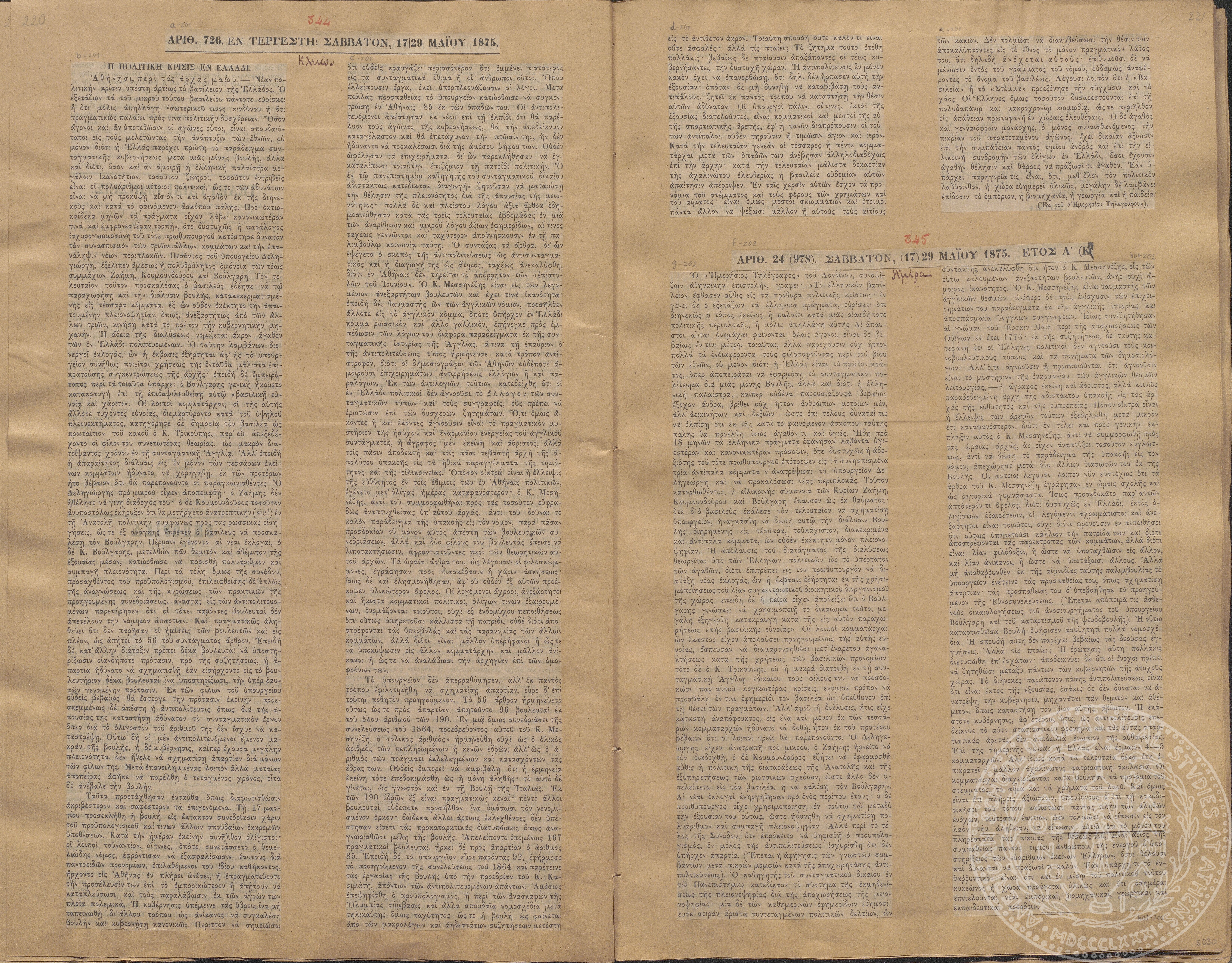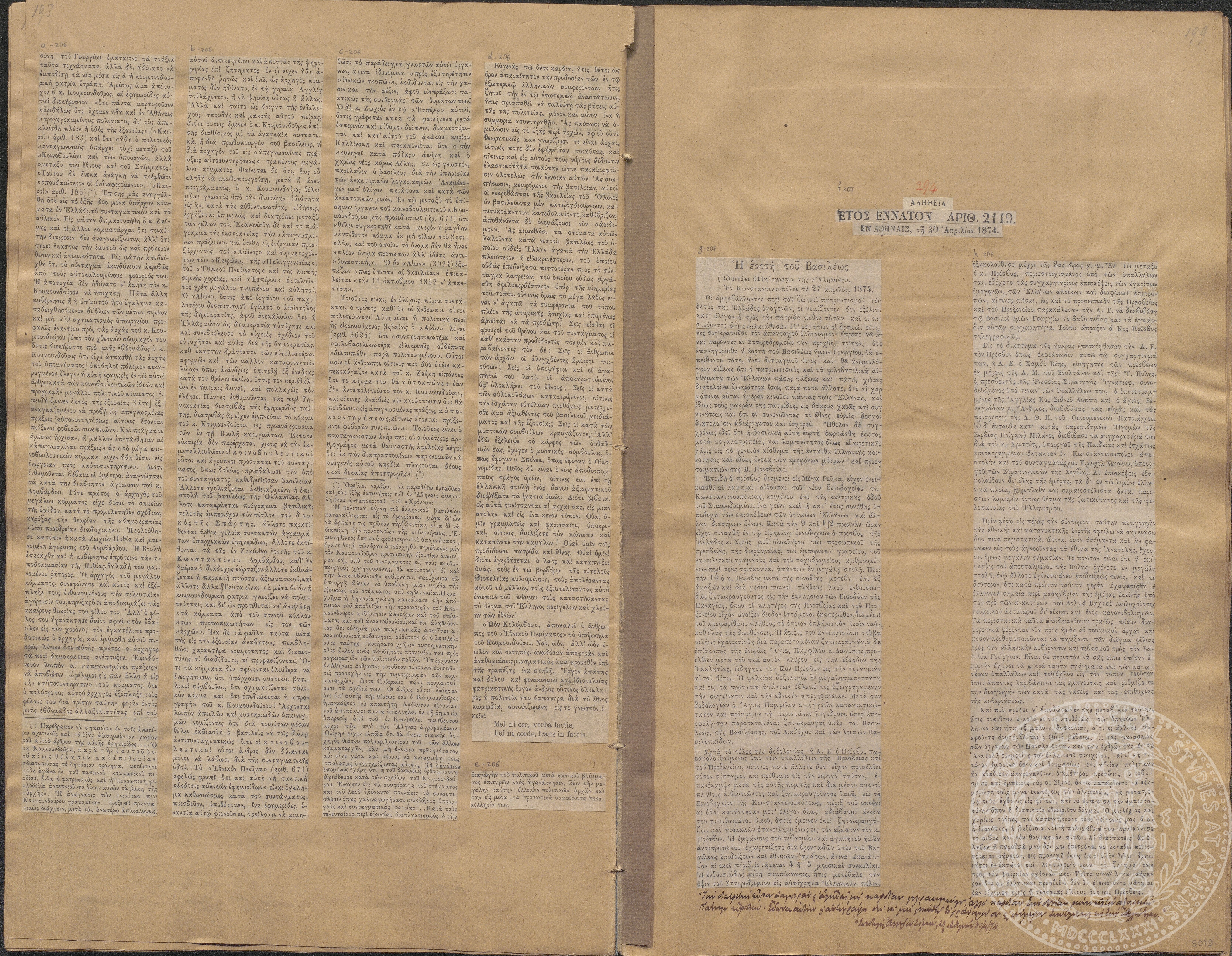 SCRAPBOOK 004, Vol. 2, Ι. Γεννάδιος και οικογένεια.  Η Ελλάδα στον τύπο (1874–1876) , Spread 044