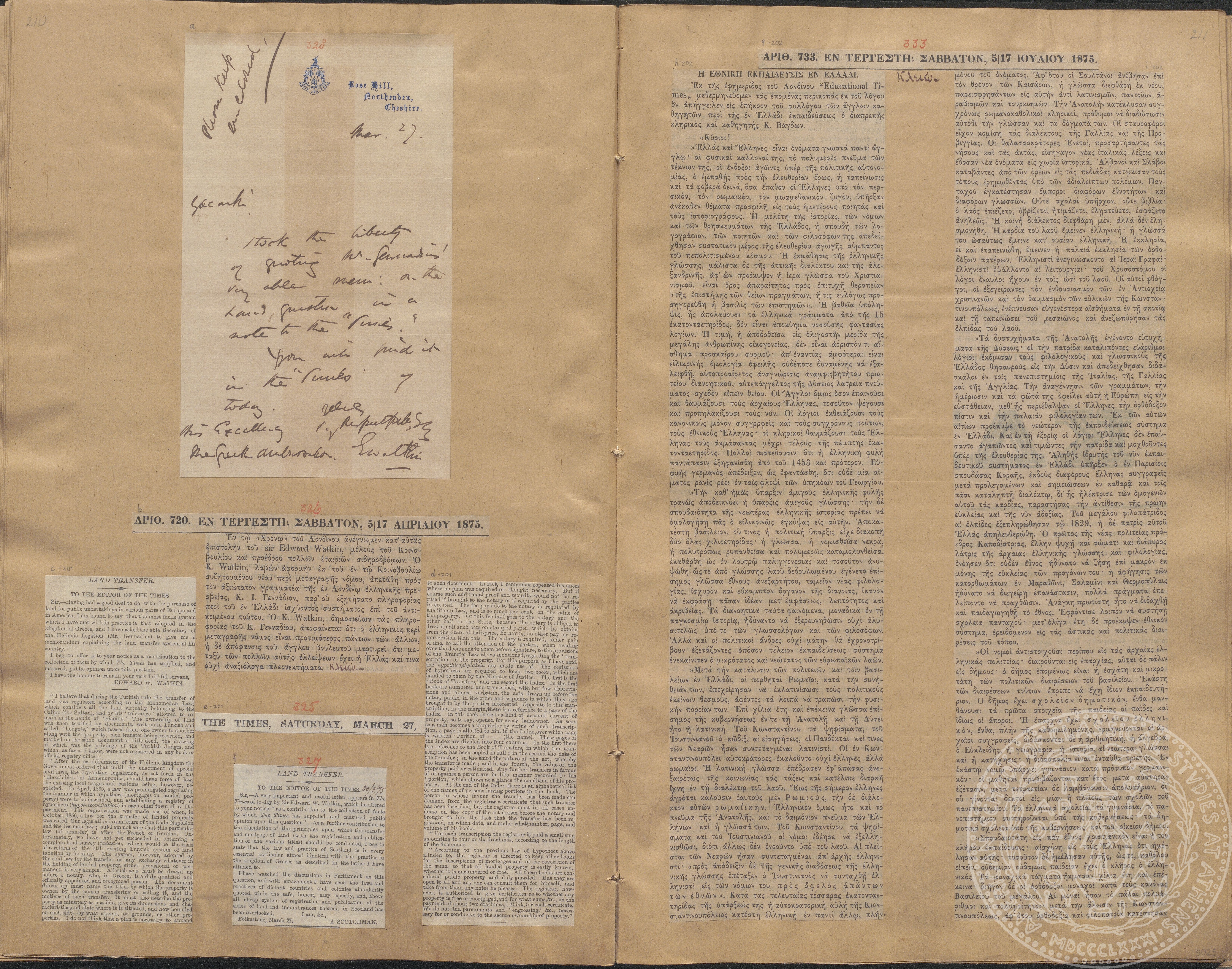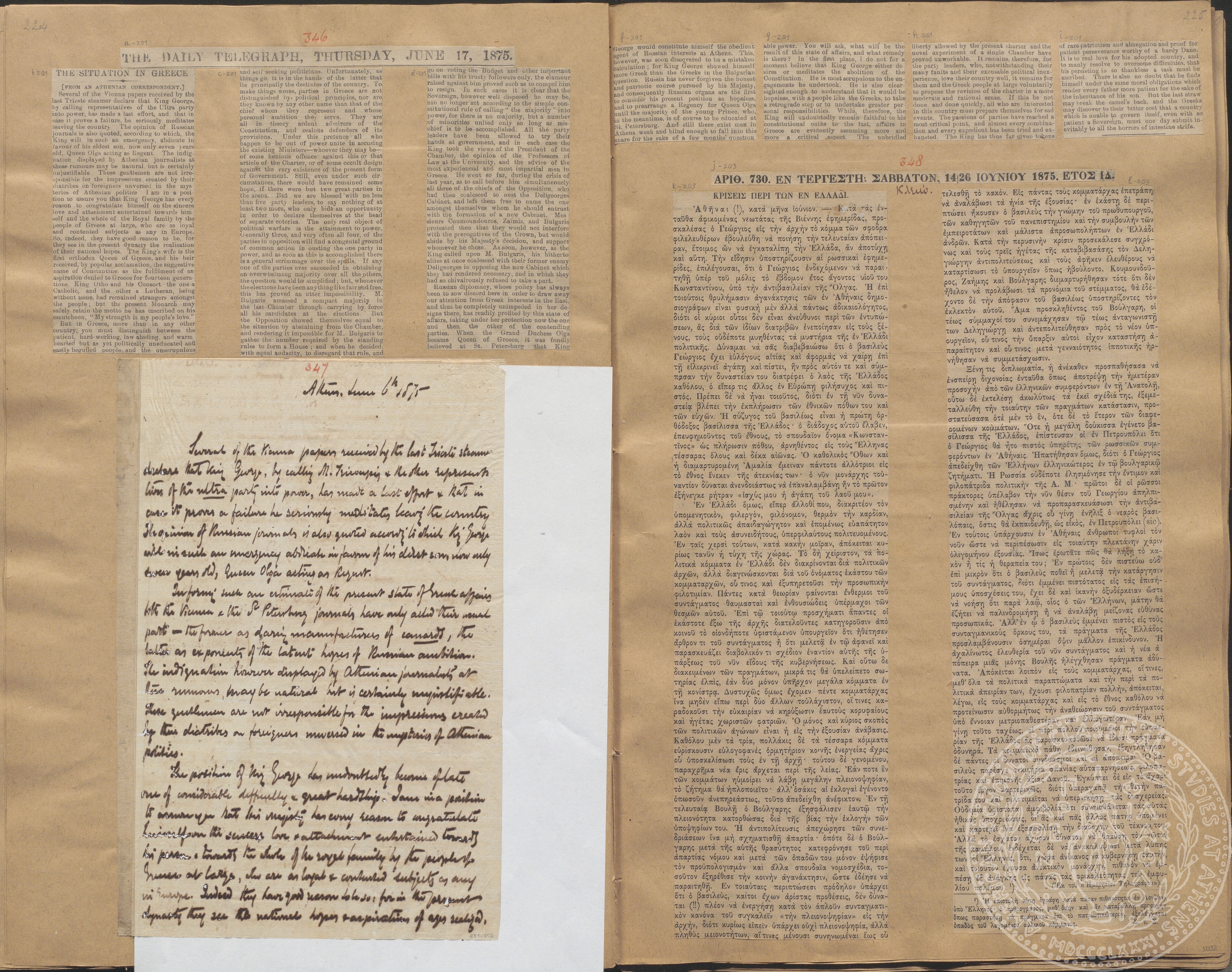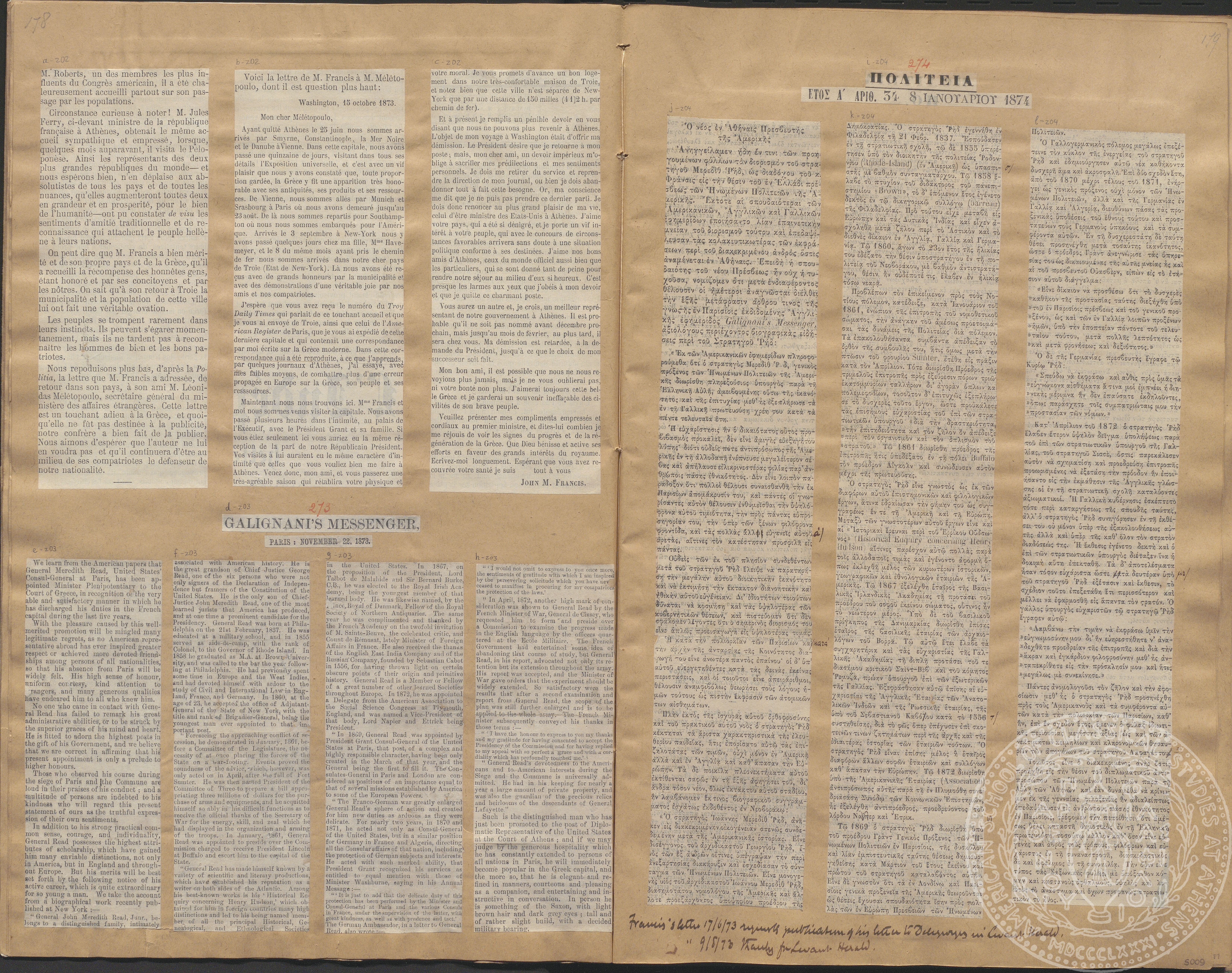 SCRAPBOOK 004, Vol. 2, Ι. Γεννάδιος και οικογένεια.  Η Ελλάδα στον τύπο (1874–1876) , Spread 073