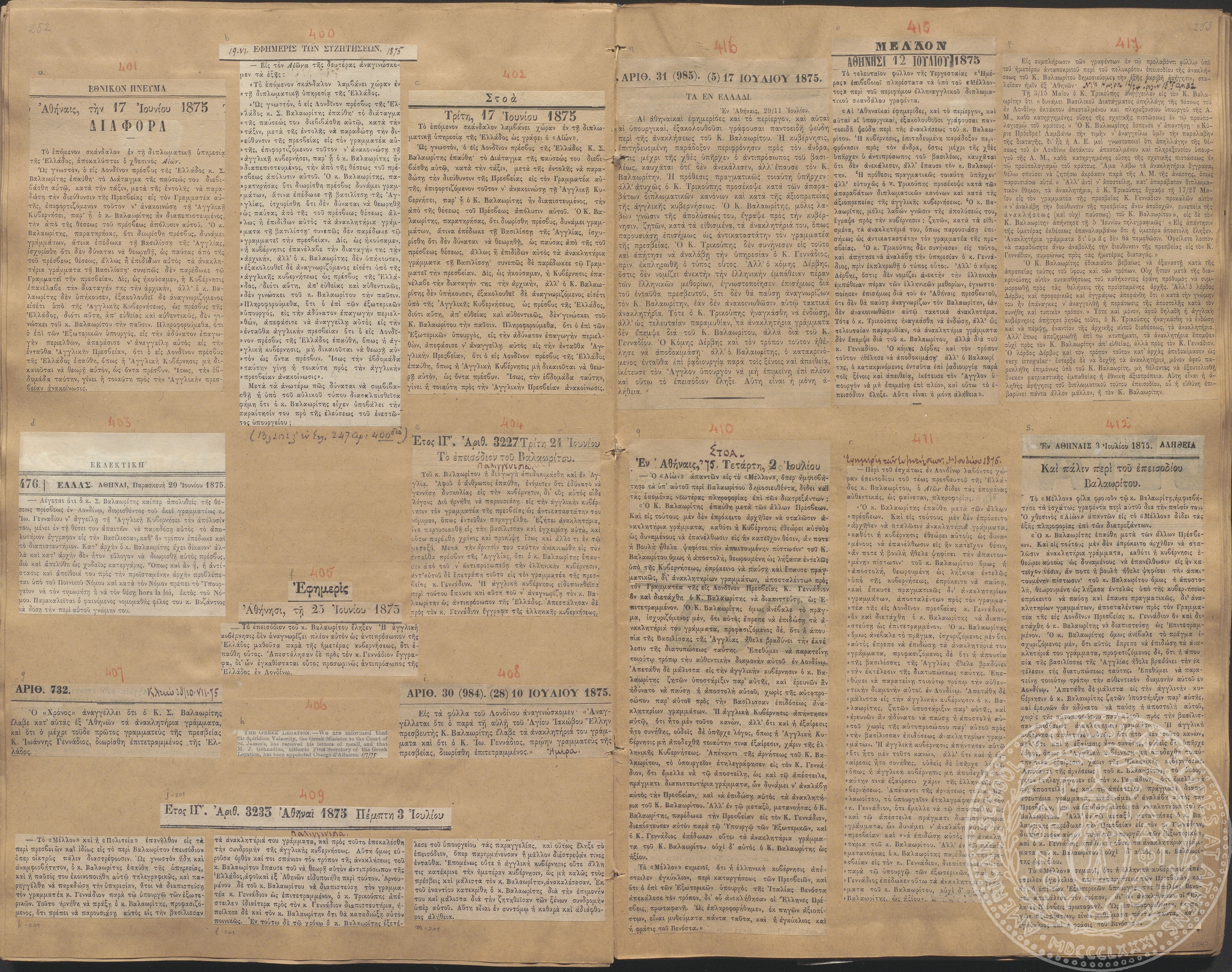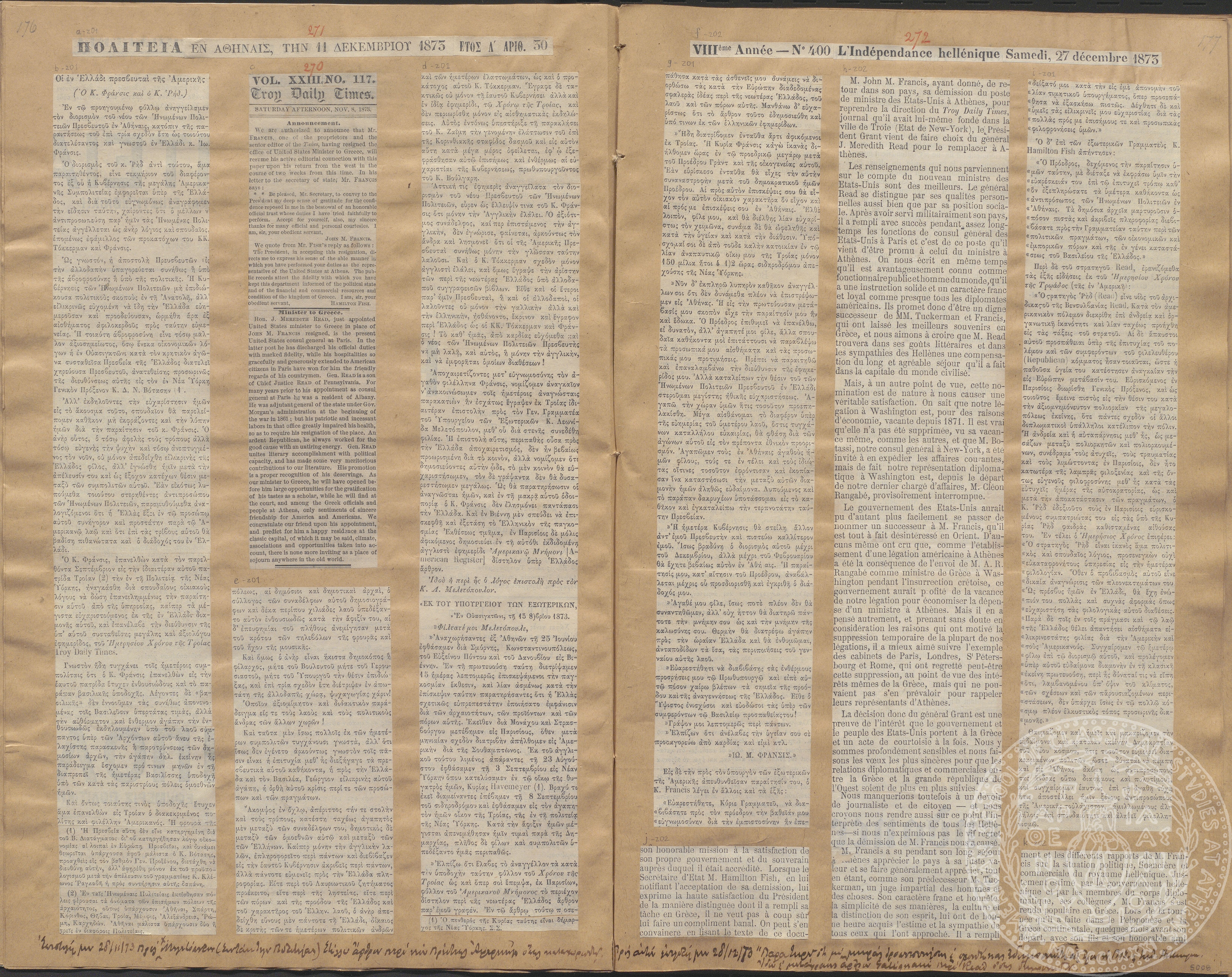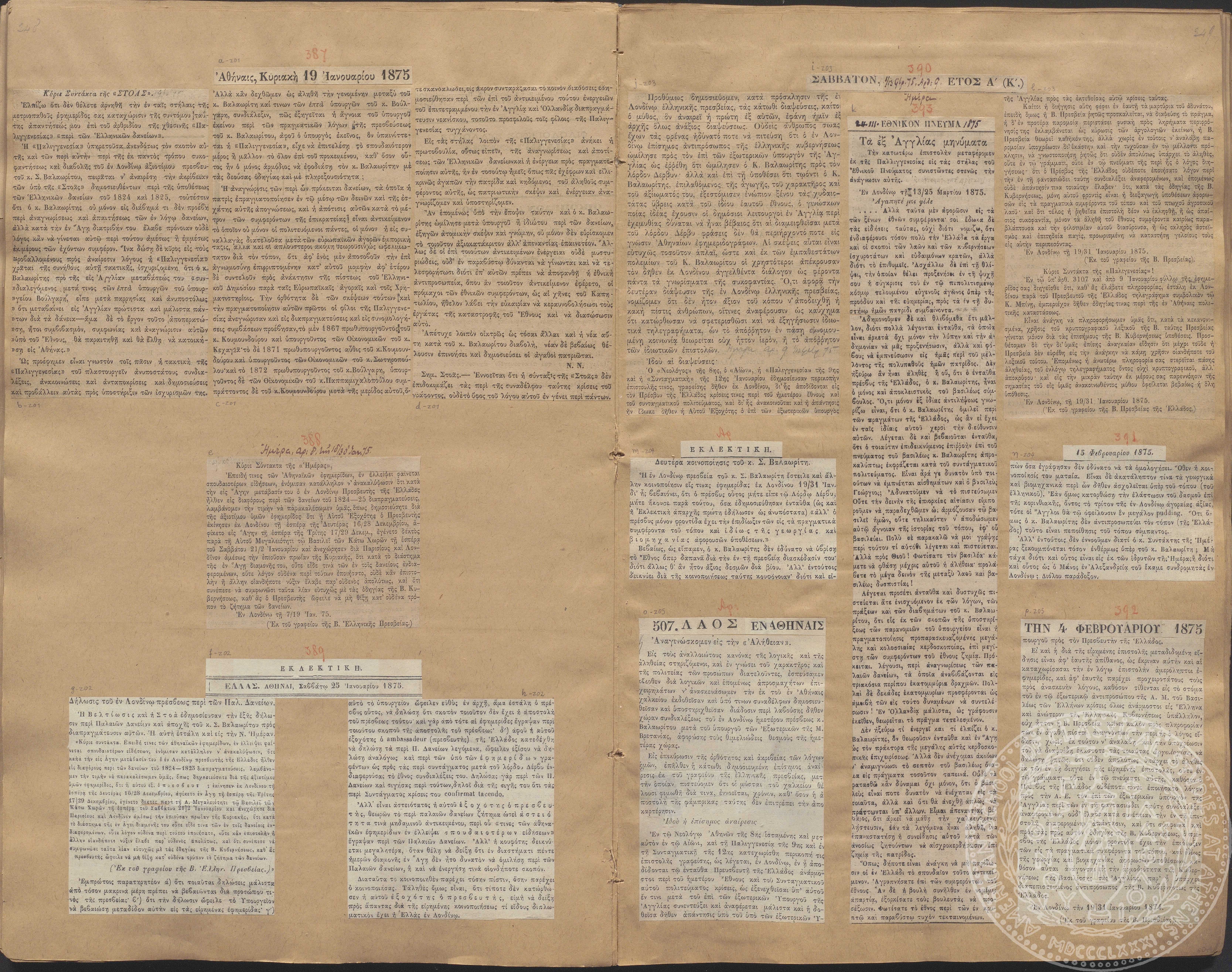 SCRAPBOOK 004, Vol. 2, Ι. Γεννάδιος και οικογένεια.  Η Ελλάδα στον τύπο (1874–1876) , Spread 073