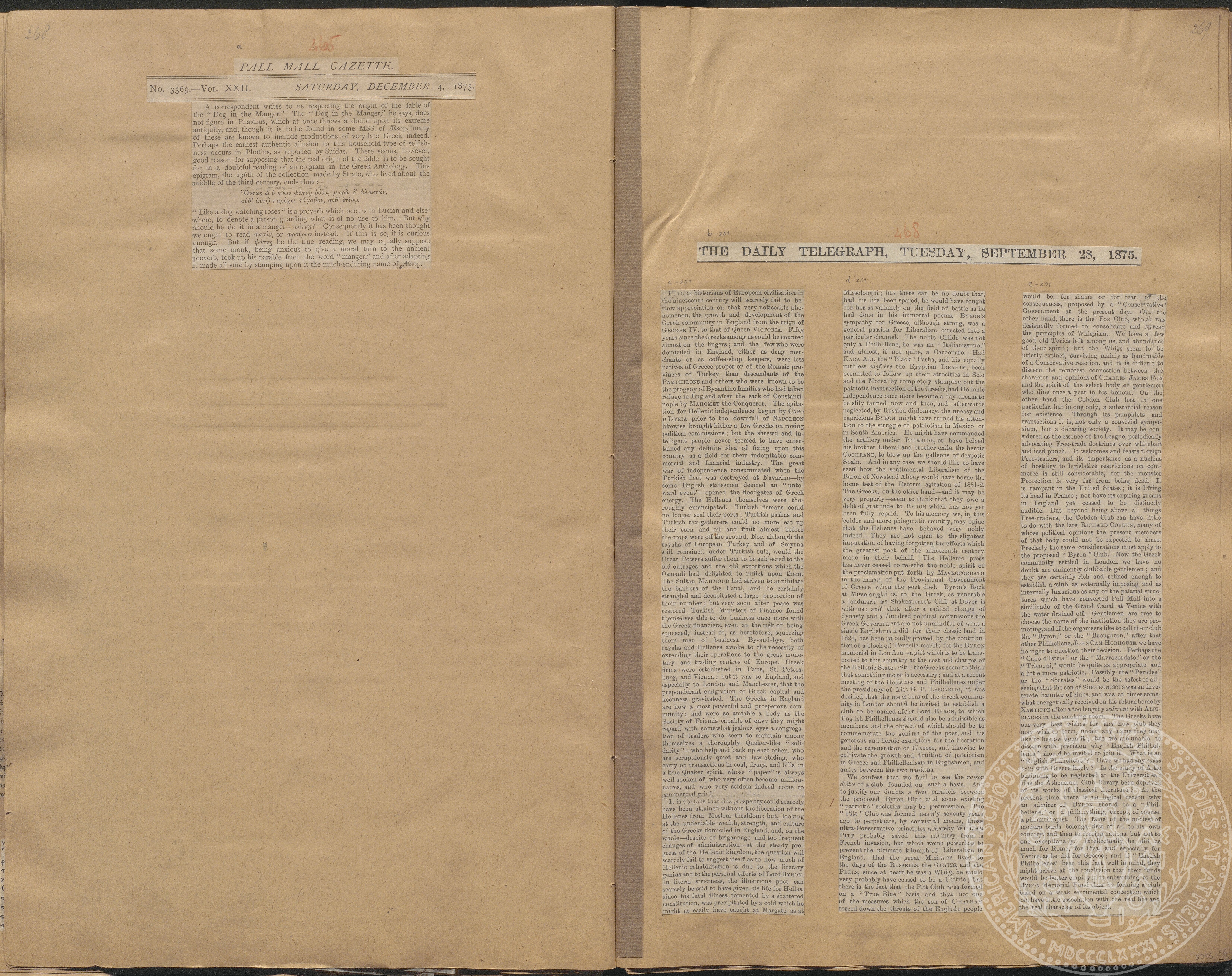 SCRAPBOOK 004, Vol. 2, Ι. Γεννάδιος και οικογένεια.  Η Ελλάδα στον τύπο (1874–1876) , Spread 068