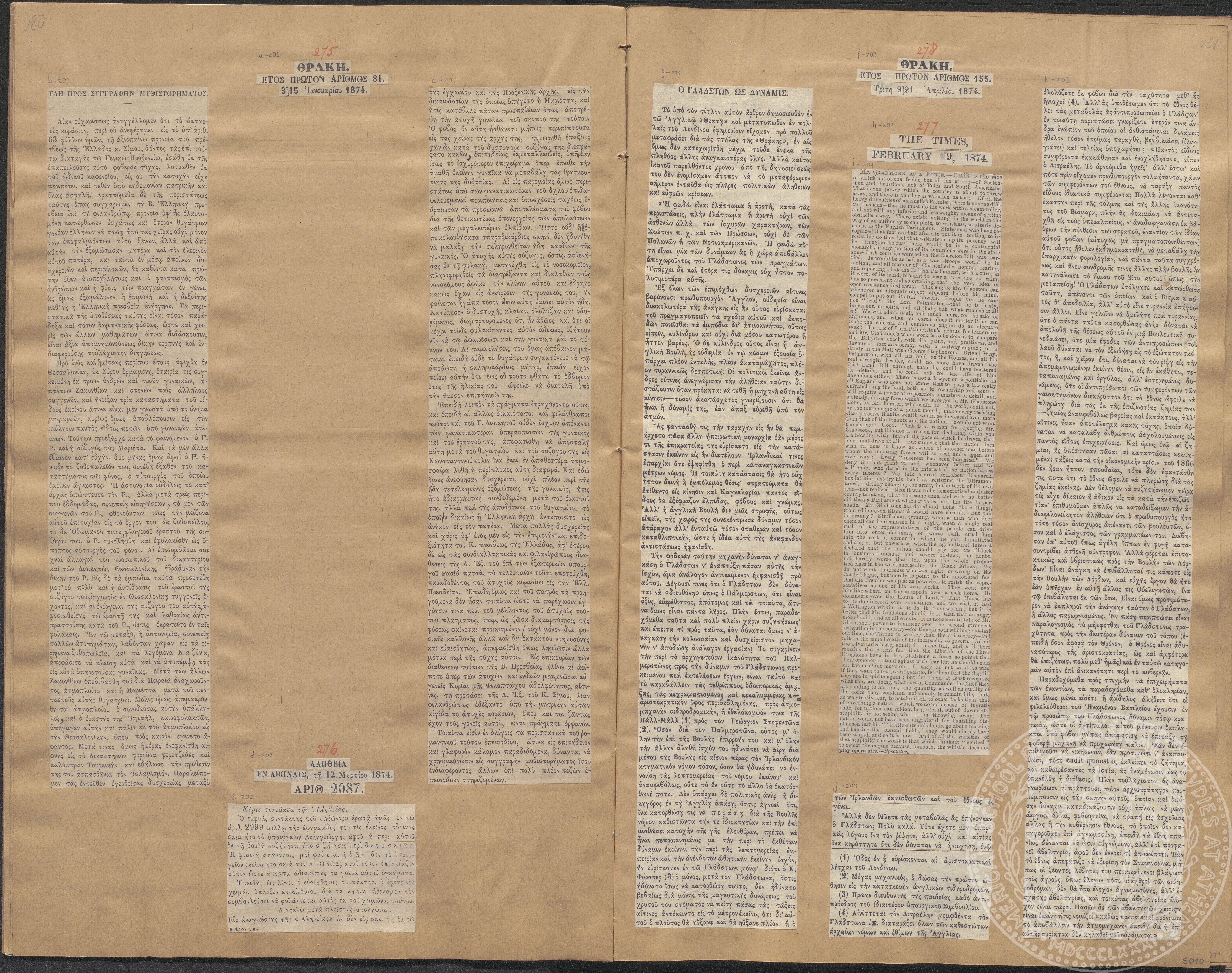 SCRAPBOOK 004, Vol. 2, Ι. Γεννάδιος και οικογένεια.  Η Ελλάδα στον τύπο (1874–1876) , Spread 077