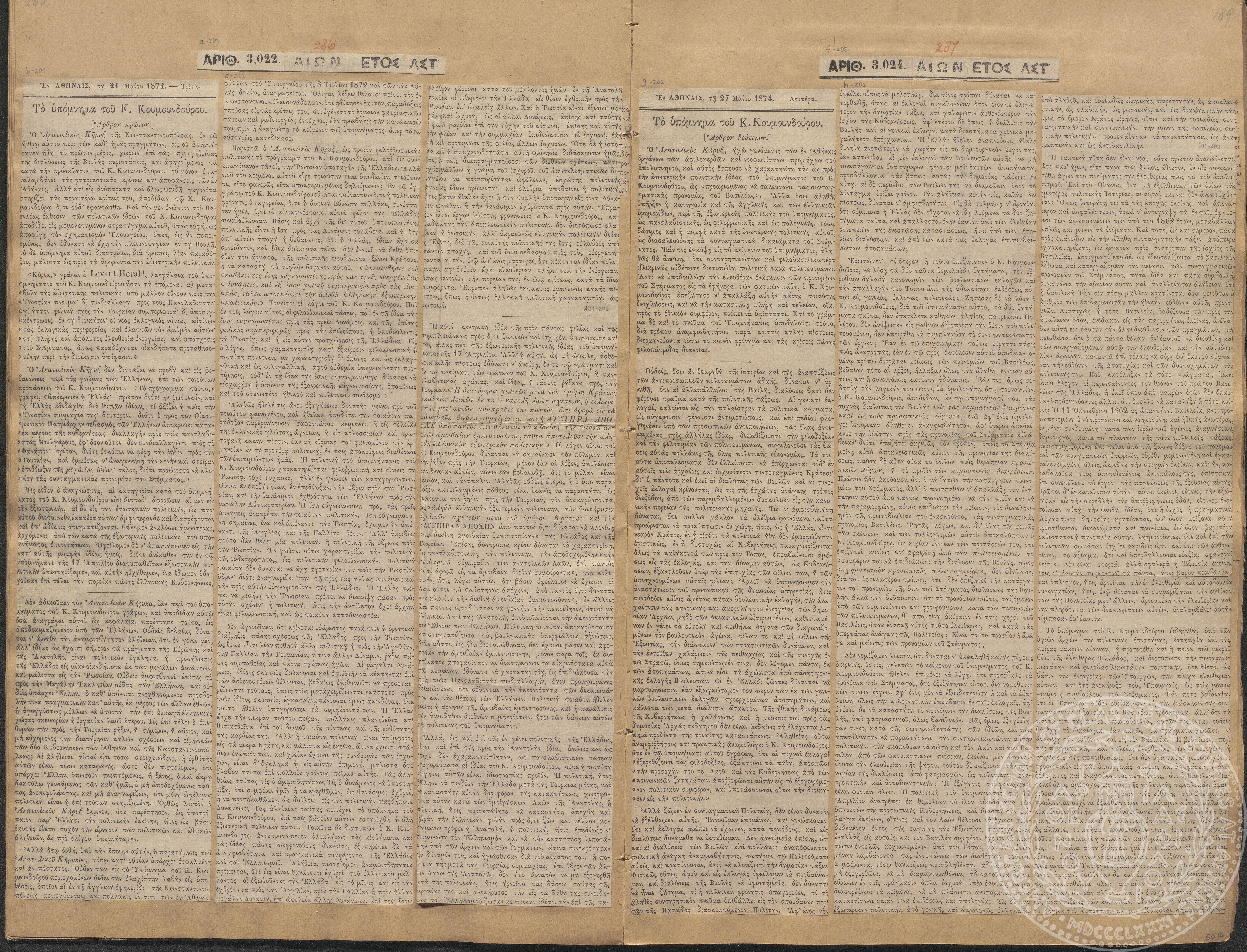 SCRAPBOOK 004, Vol. 2, Ι. Γεννάδιος και οικογένεια.  Η Ελλάδα στον τύπο (1874–1876) , Spread 022