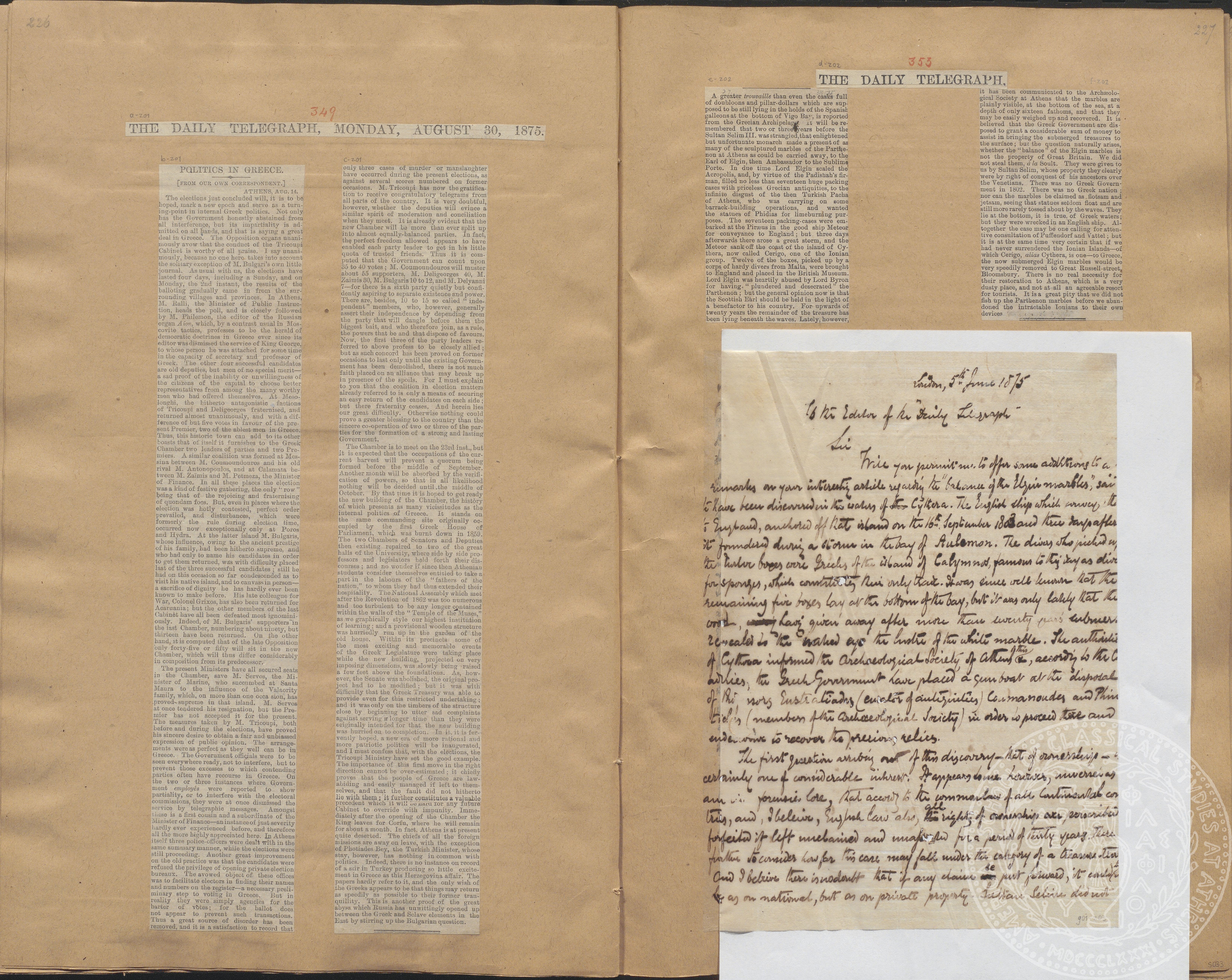 SCRAPBOOK 004, Vol. 2, Ι. Γεννάδιος και οικογένεια.  Η Ελλάδα στον τύπο (1874–1876) , Spread 050