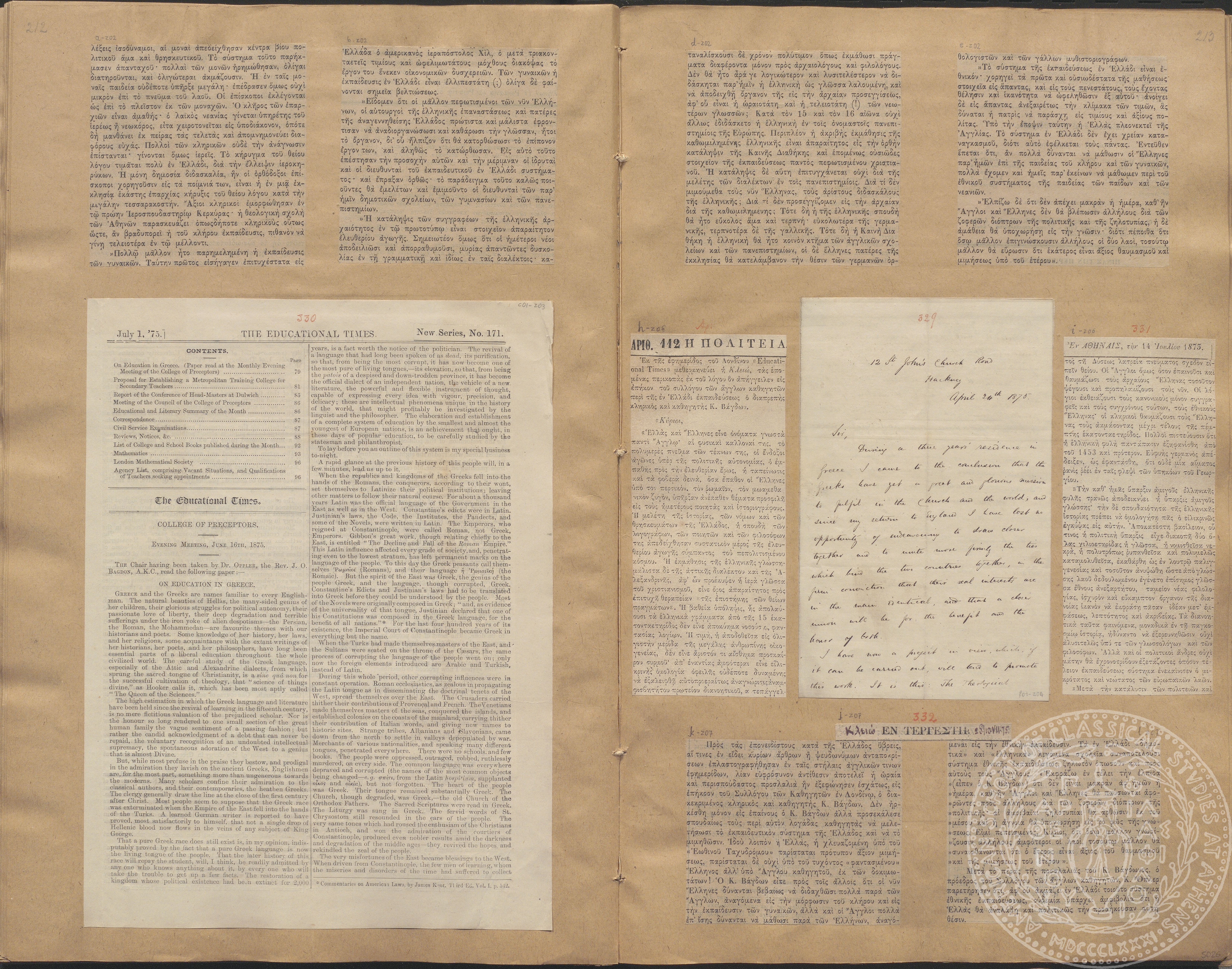 SCRAPBOOK 004, Vol. 2, Ι. Γεννάδιος και οικογένεια.  Η Ελλάδα στον τύπο (1874–1876) , Spread 071
