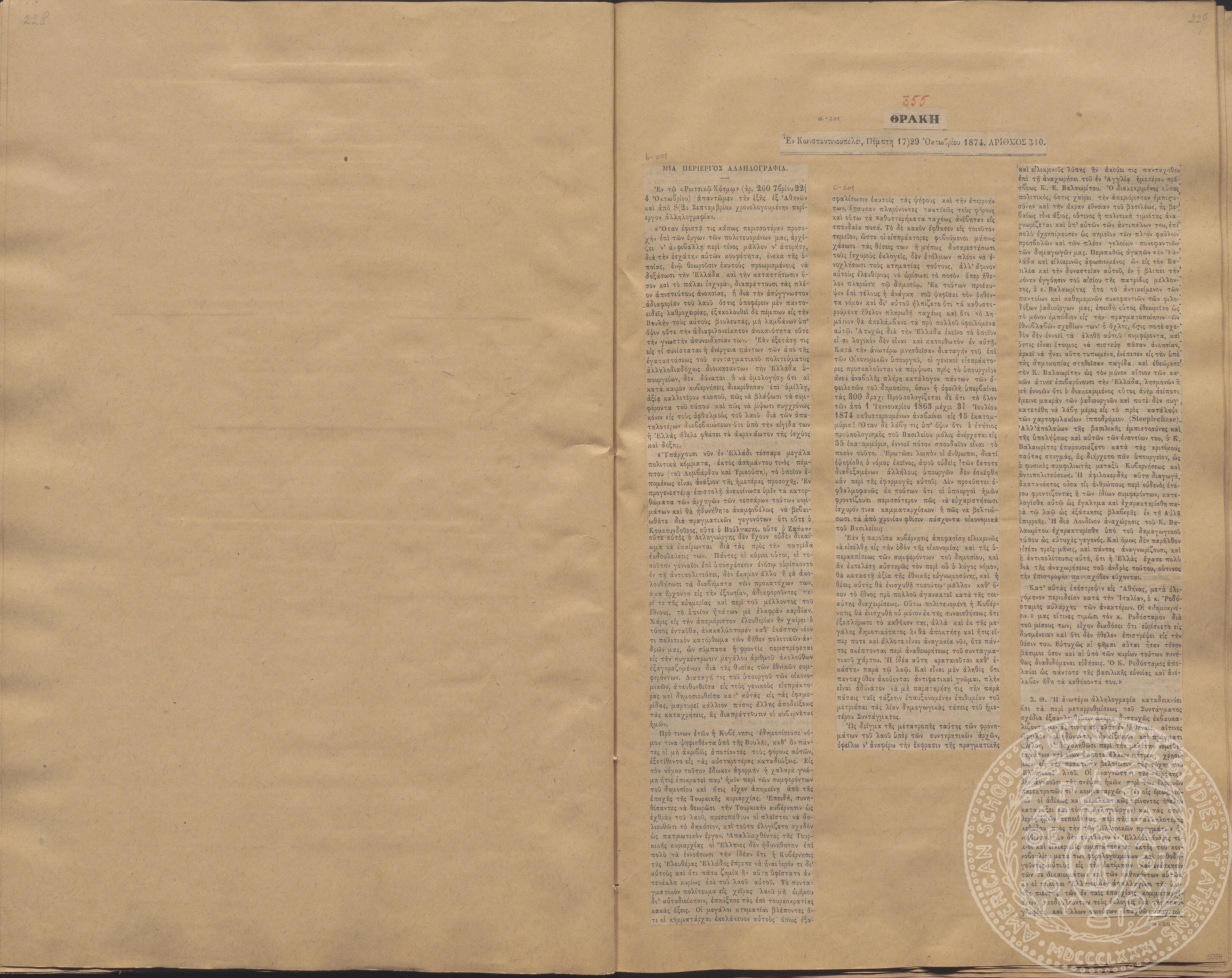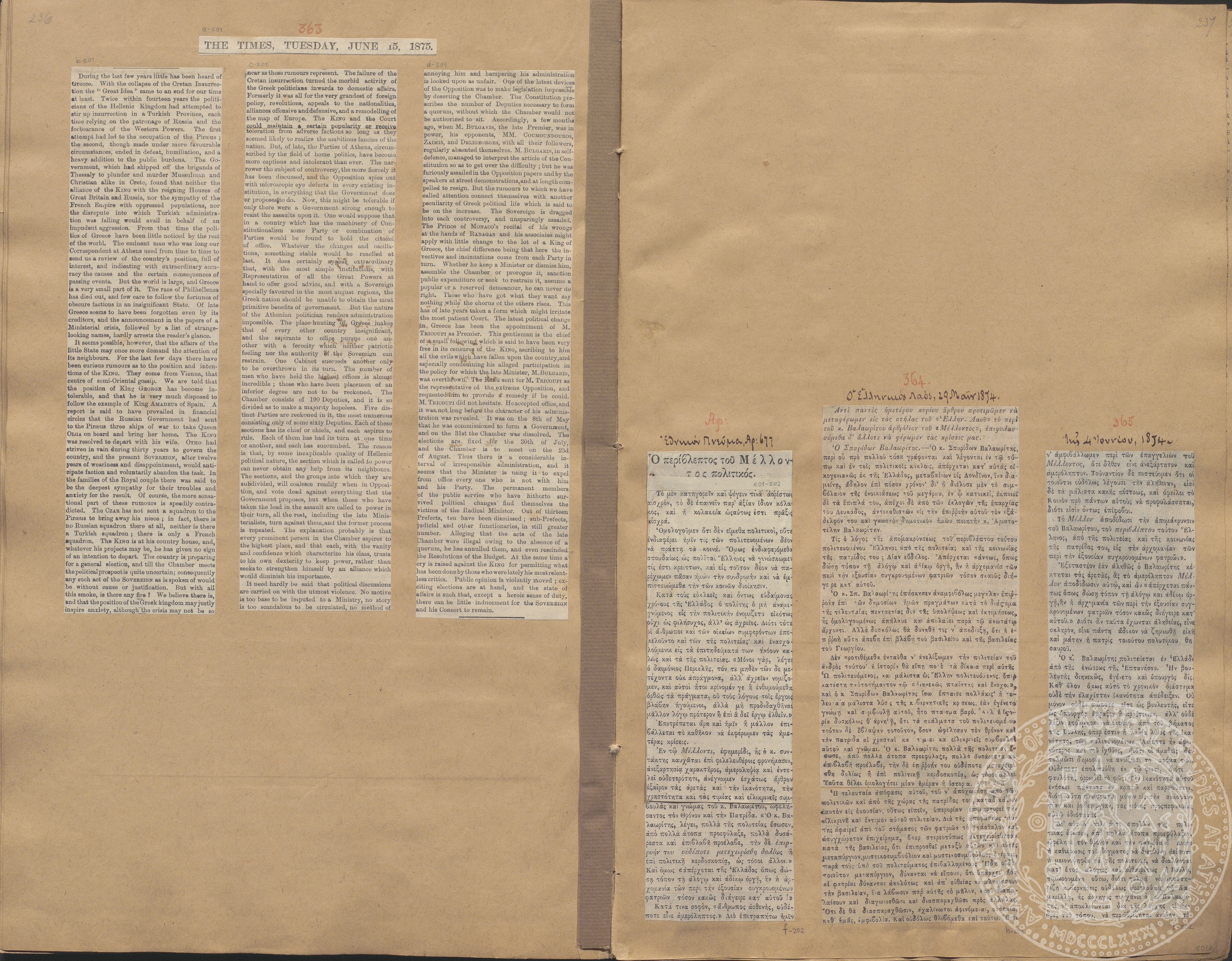 SCRAPBOOK 004, Vol. 2, Ι. Γεννάδιος και οικογένεια.  Η Ελλάδα στον τύπο (1874–1876) , Spread 053
