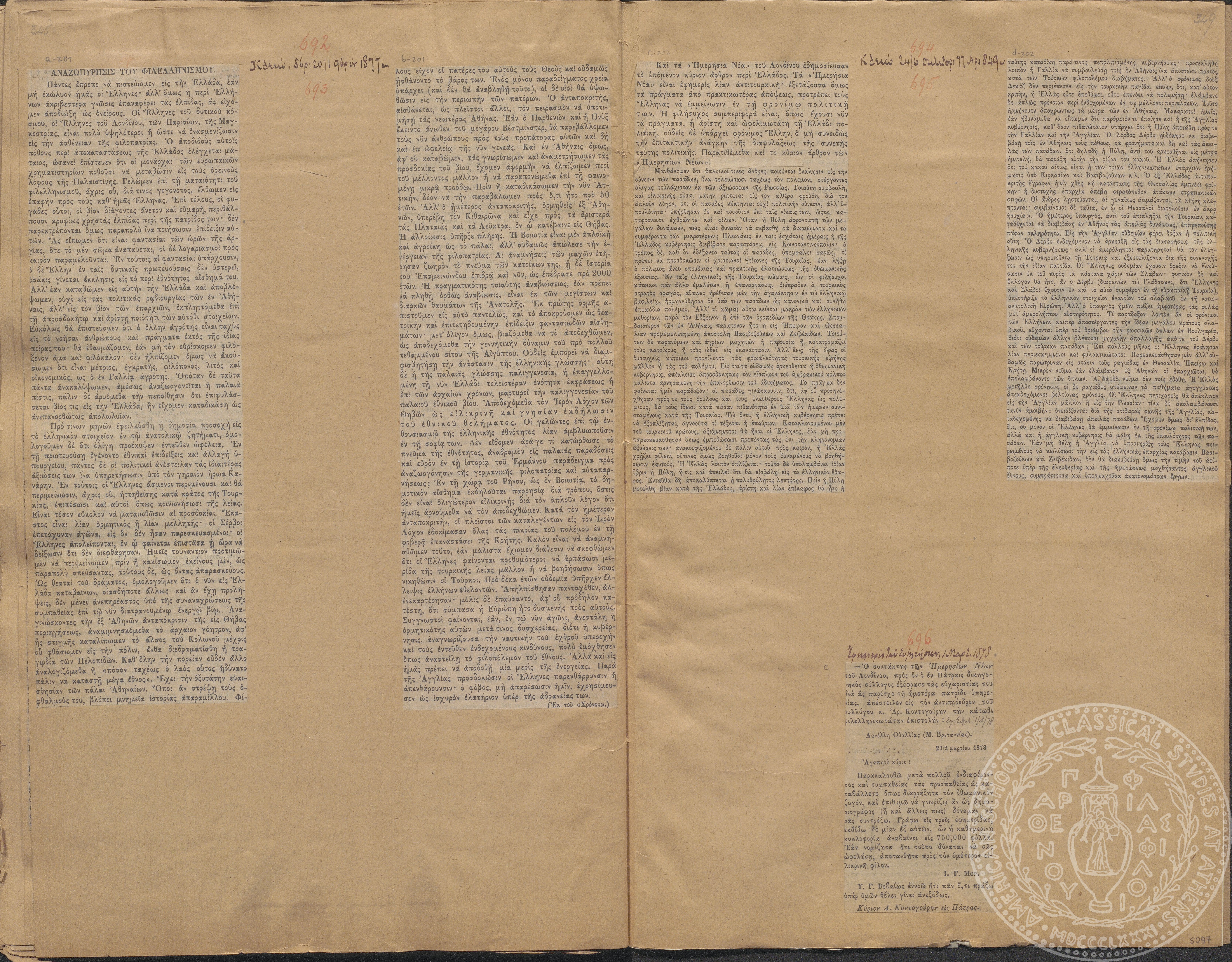 SCRAPBOOK 004, Vol. 2, Ι. Γεννάδιος και οικογένεια.  Η Ελλάδα στον τύπο (1874–1876) , Spread 093