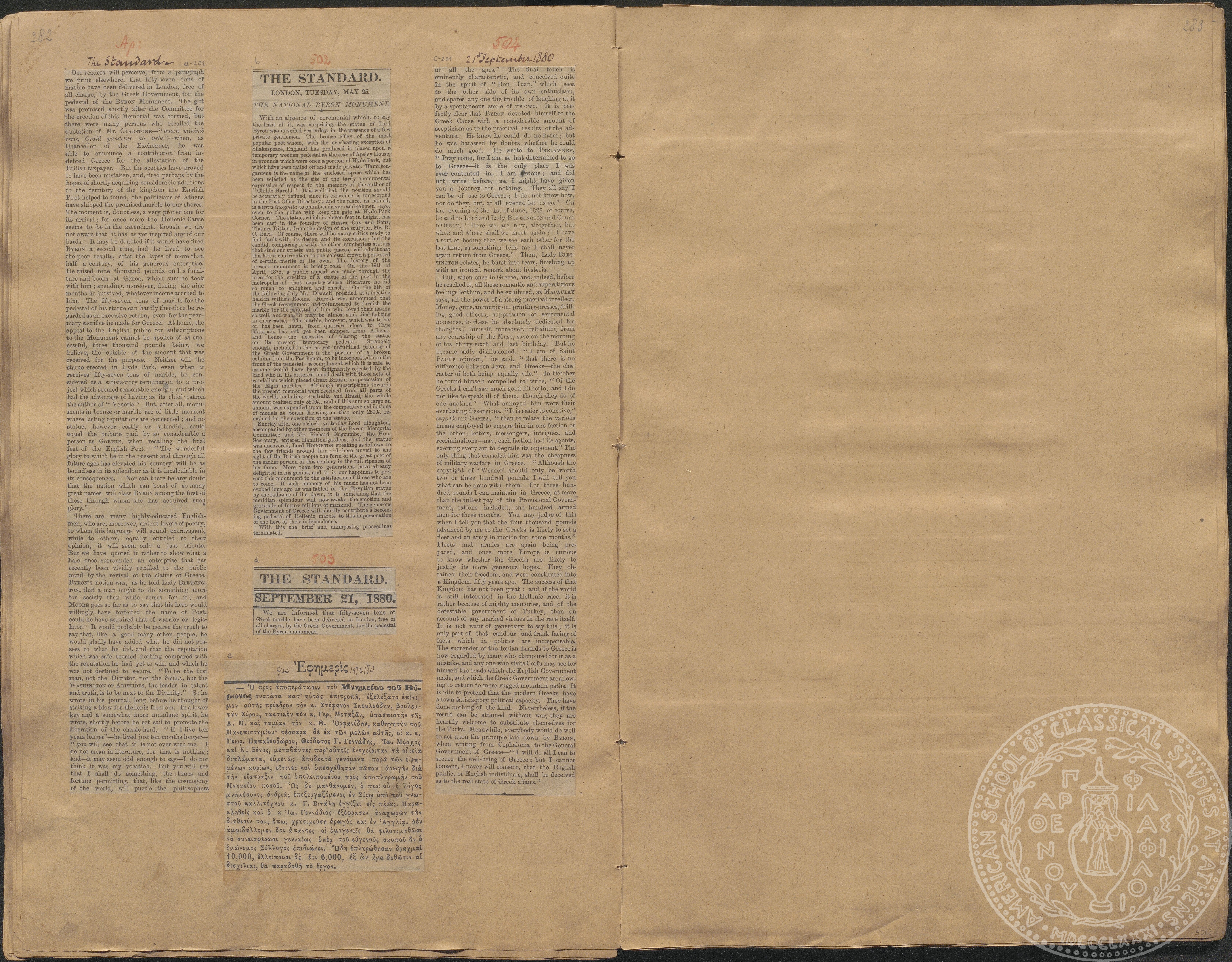 SCRAPBOOK 004, Vol. 2, Ι. Γεννάδιος και οικογένεια.  Η Ελλάδα στον τύπο (1874–1876) , Spread 001