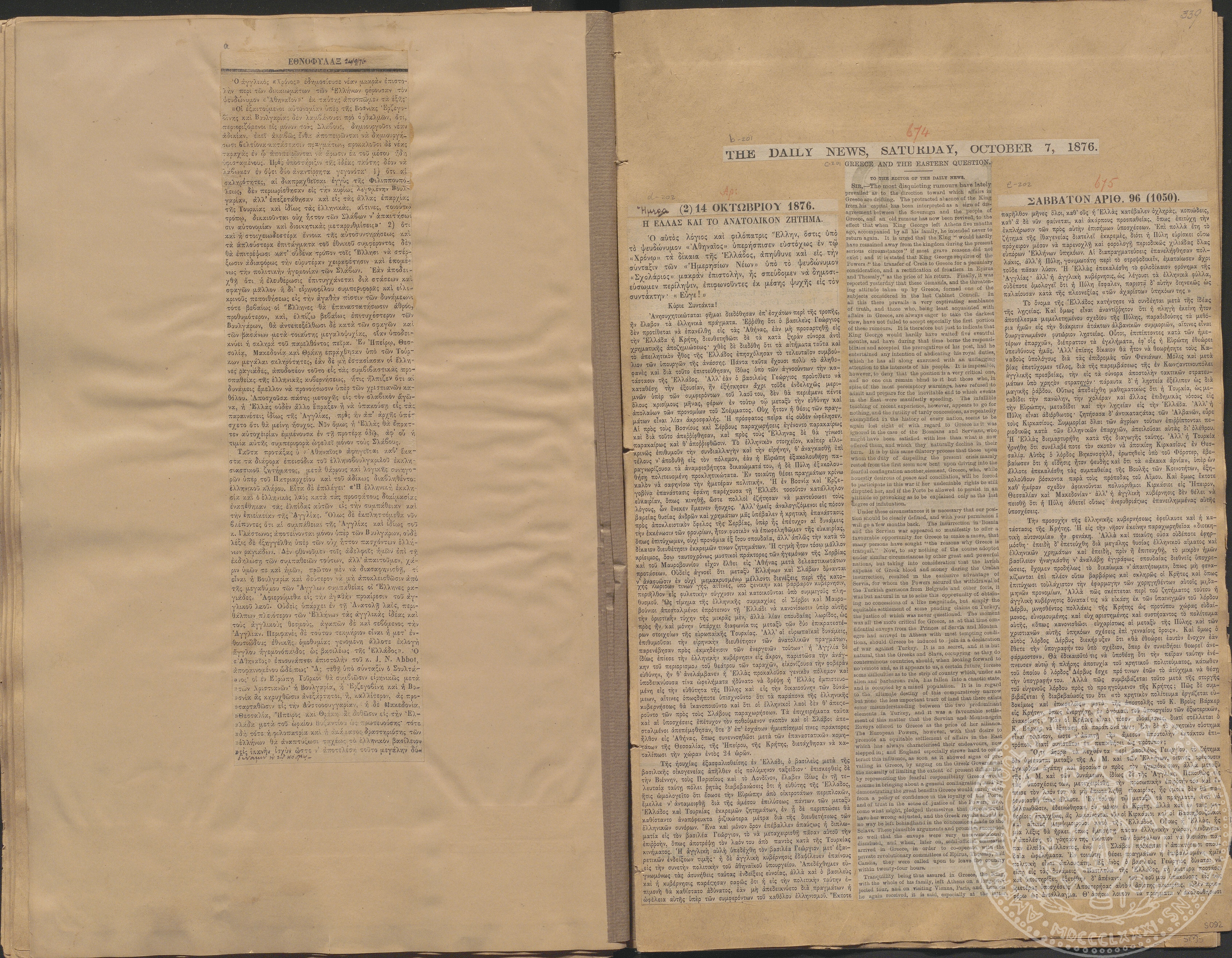 SCRAPBOOK 004, Vol. 2, Ι. Γεννάδιος και οικογένεια.  Η Ελλάδα στον τύπο (1874–1876) , Spread 096