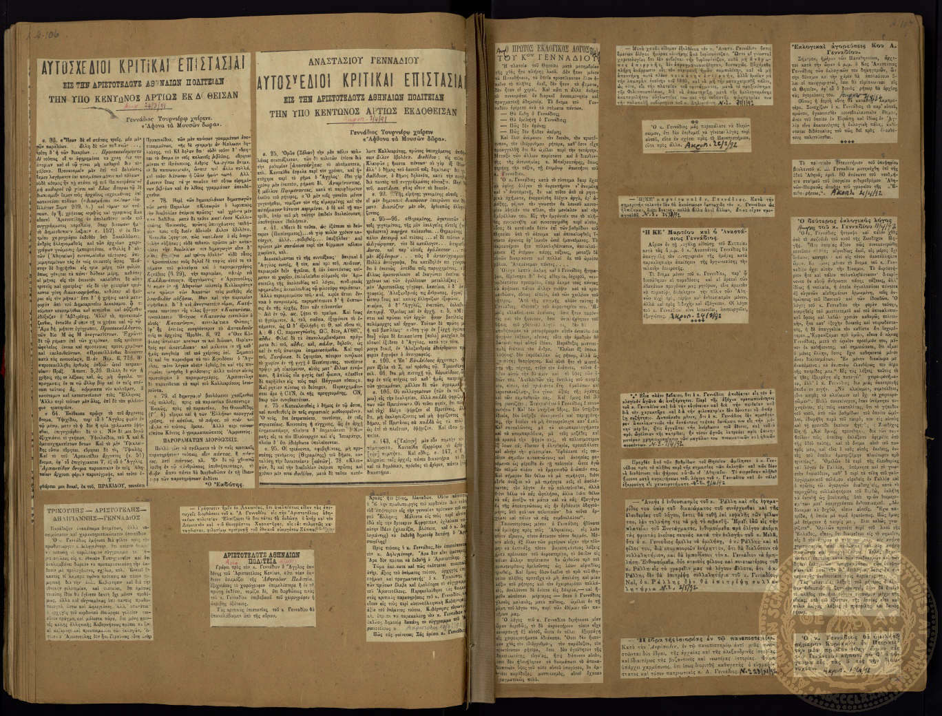 SCRAPBOOK 003, Vol. 2, Ι. Γεννάδιος και οικογένεια.  Αναστασίου [Γενναδίου] , Spread 093